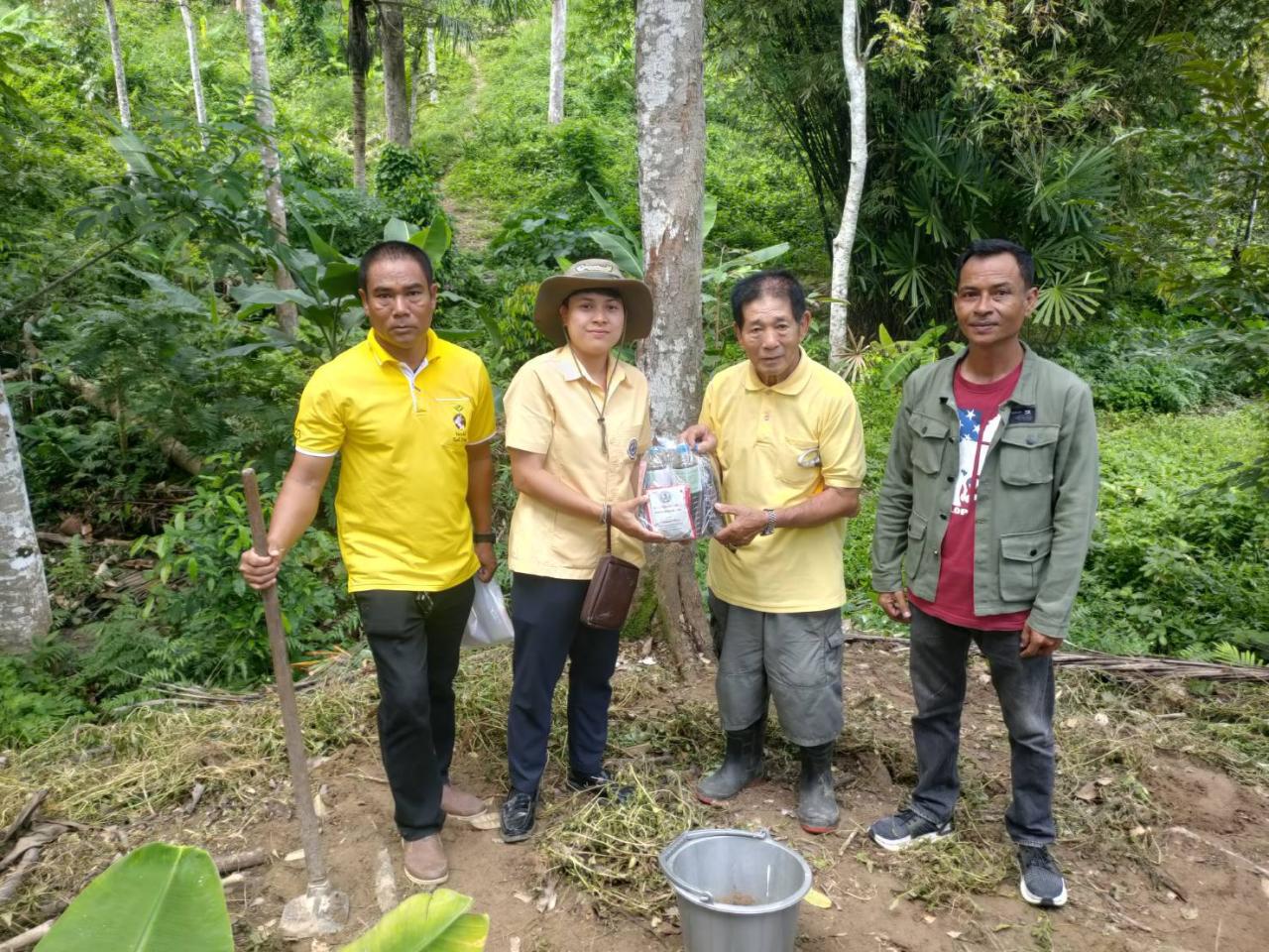 วันจันทร์ ที่ 29 กรกฎาคม พ.ศ. 2568 นางสาวนาฏกมล แก้วพิชัย นักวิชาการเกษตรปฏิบัติการ นายพิทยา รอดอุ่น นักวิชาการเกษตร และนายวรายุทธิ์ วงศ์ชู เจ้าหน้าที่แผนที่ภาพถ่าย ลงพื้นที่แนะนำการเก็บตัวอย่างดิน การจัดการดิน การใช้น้ำหมักชีวภาพจากผลิตภัณฑ์ พด.แก่เกษตรกรในพื้นที่ หมู่ที่ 4 ตำบลไม้ขาว อำเภอถลาง จังหวัดภูเก็ต