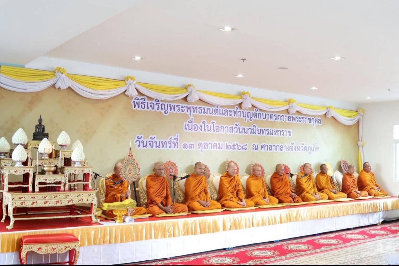 วันจันทร์ที่ 13 ตุลาคม 2568 นายทรงวุฒิ แสงสุริยะ ผู้อำนวยการสถานีพัฒนาที่ดินภูเก็ต พร้อมด้วย นางสาวนาฏกมล แก้วพิชัย,นางสาวฐิตาภา จอมเลิศ นักวิชาการเกษตรปฏิบัติการและเจ้าหน้าที่ เข้าร่วมพิธีเจริญพระพุทธมนต์และพิธีทำบุญตักบาตรถวายพระราชกุศล เนื่องในวันนวมินทรมหาราช 13 ตุลาคม 2568 ณ ศาลากลางจังหวัดภูเก็ต โดยมีพระศรีวชิรคุณ เจ้าคณะอำเภอกะทู้ เจ้าอาวาสวัดสิริสีลสุภาราม เป็นประธานฝ่ายสงฆ์ และนายศรัณย์ศักด์ ศรีเครือเนตร ผู้ว่าราชการจังหวัดภูเก็ต เป็นประธานฝ่ายฆราวาส และร่วมพิธีวางพวงมาลาถวายสักการะ เพื่อน้อมรำลึกในพระมหากรุณาธิคุณในพระบาทสมเด็จพระบรมชนกาธิเบศร มหาภูมิพลอดุลยเดชมหาราช บรมนาถบพิตร ที่ทรงมีต่อปวงชนชาวไทย ณ หอประชุมมหิศรภักดี ศูนย์ราชการจังหวัดภูเก็ต อำเภอเมืองภูเก็ต จังหวัดภูเก็ต