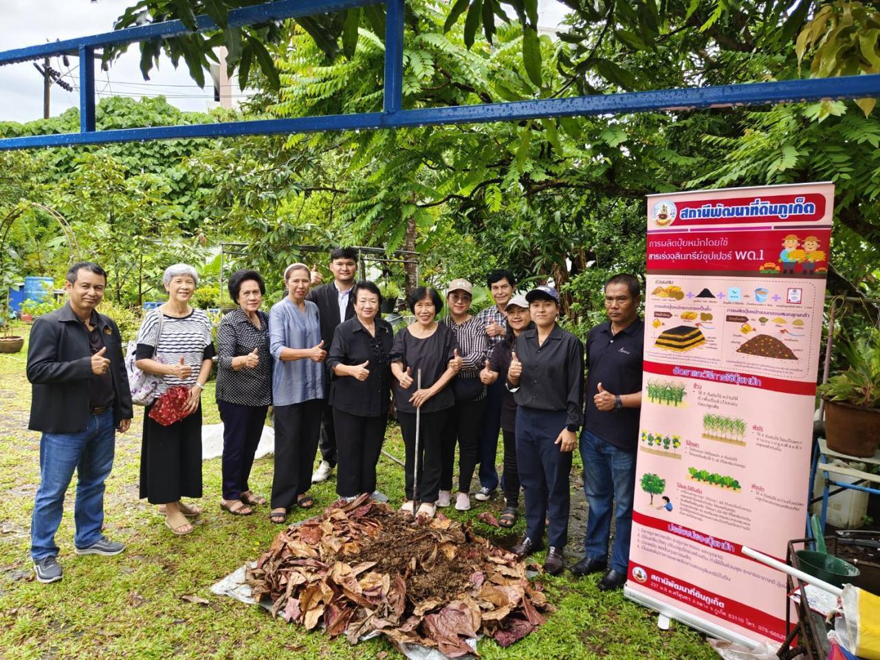 นางสาวนาฏกมล แก้วพิชัย นักวิชาการเกษตรปฏิบัติการ พร้อมด้วยนายพิทยา รอดอุ่น นักวิชาการเกษตร และนายวรายุทธิ์ วงศ์ชู เจ้าหน้าที่แผนที่ภาพถ่าย สถานีพัฒนาที่ดินภูเก็ต ร่วมเป็นวิทยากรถ่ายทอดองค์ความรู้พร้อมสาธิตการทำปุ๋ยหมักโดยใช้สารเร่งซุปเปอร์ พด.1 การขยายเชื้อควบคุมโรคพืช พด.3 และน้ำหมักชีวภาพ พด.2 จากพืชอวบน้ำ แก่สมาชิกกลุ่มตลาดใหญ่ร่วมใจ 1 เพื่อให้สมาชิกกลุ่มได้เห็นถึงความสำคัญของการปรับปรุงบำรุงดิน ให้สามารถใช้ทรัพยากรดินได้อย่างยั่งยืน โดยสมาชิกกลุ่มจะมีการนำองค์ความรู้ที่ได้ไปประยุกต์ใช้ สำหรับดำเนินการปลูกผักสลัดเพื่อจำหน่ายผลผลิต และจำหน่ายเมล็ดพันธุ์ เพื่อสร้างรายได้ที่มั่นคงต่อไป ณ ตำบลตลาดใหญ่ อำเภอเมืองภูเก็ต จังหวัดภูเก็ต