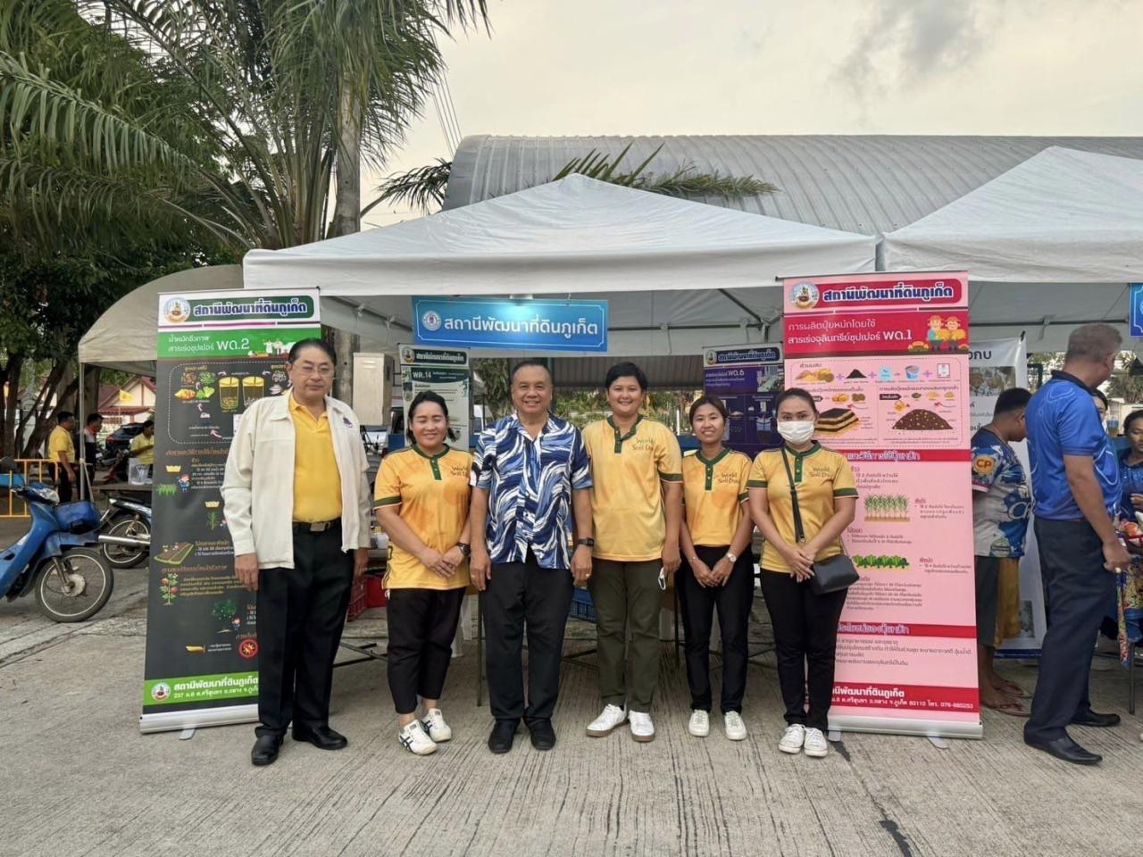 วันที่ 20 เมษายน 2567 นายทรงวุฒิ แสงสุริยะ ผู้อำนวยการสถานีพัฒนาที่ดินภูเก็ต มอบหมายให้เจ้าหน้าที่สถานีพัฒนาที่ดินภูเก็ต ร่วมงานอบจ.ดูแลประชาชน ณ โรงเรียนวัดเทพกระษัตรี ต.เทพกระษัตรี อ.ถลาง จ.ภูเก็ต โดยให้การสนับสนุนน้ำหมักชีวภาพ (พด.2) เพื่อส่งเสริมการใช้สารอินทรีย์ลดการใช้สารเคมีทางการเกษตร และบริการรับ-ส่งดิน เพื่อวิเคราะห์ธาตุอาหารในดิน ใช้ปุ๋ยตามค่าวิเคราะห์ดิน พร้อมให้คำแนะนำด้านการปรับปรุงบำรุงดิน เพิ่มประสิทธิภาพการใช้ประโยชน์ที่ดินในการทำการเกษตรให้แก่เกษตรกร