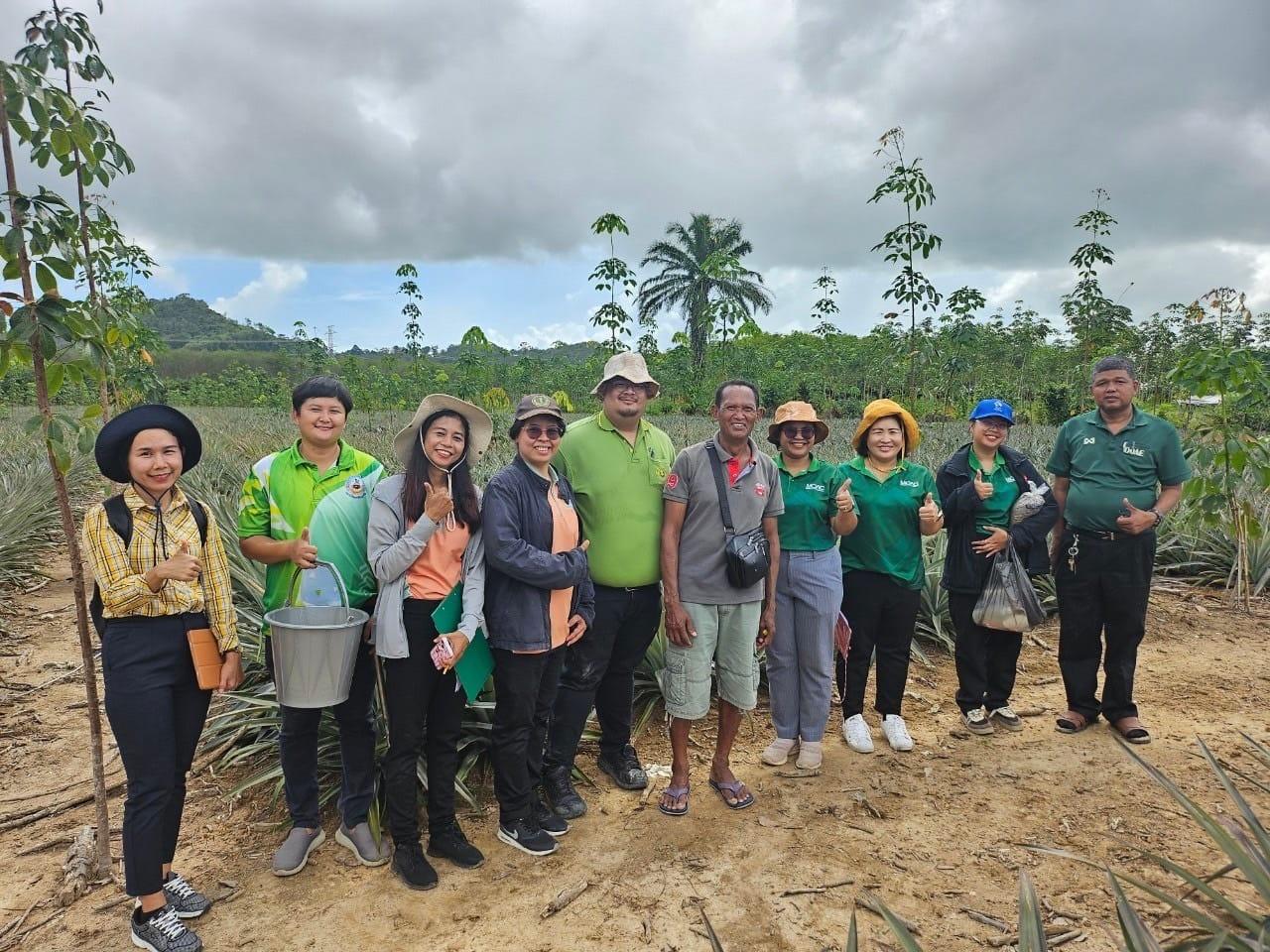 วันพุธ ที่ 16 ตุลาคม พ.ศ. 2567 นายทรงวุฒิ แสงสุริยะผู้อำนวยการสถานีพัฒนาที่ดินภูเก็ต มอบหมายให้นางสาวรัตนาภรณ์ เพชรจำรุส นักวิชาการเกษตรชำนาญการพิเศษ นางสาวทิพวัลย์ จรัญรักษ์ และนางสาวเมนกา จันทนะเทศ นักวิชาการเกษตรปฏิบัติการ ลงพื้นที่ร่วมกับคณะกรรมการควบคุมตรวจสอบสิ่งบ่งชี้ทางภูมิศาสตร์สับปะรดภูเก็ตระดับพื้นที่ ในการเก็บตัวอย่างดินวิเคราะห์ธาตุอาหาร เพื่อตรวจประเมินแปลงสับปะรดภูเก็ตของเกษตรกรผู้ขอใช้ตราสัญลักษณ์สิ่งบ่งชี้ทางภูมิศาสตร์ (Geographical Indication; GI) โดยเกษตรกรผู้ประสงค์ขอใช้ตราสัญลักษณ์สิ่งบ่งชี้ทางภูมิศาสตร์ ต้องปฏิบัติตามคู่มือปฏิบัติงานเพื่อรักษามาตรฐานของสับปะรดภูเก็ตให้มีคุณภาพ ตั้งแต่ขั้นตอนการปลูก วิธีการควบคุมคุณภาพ การบำรุงรักษา การเก็บเกี่ยว ตลอดจนการจัดจำหน่าย เพื่อสร้างความเชื่อมั่นให้กับผู้บริโภคทั้งชาวไทยและต่างชาติต่อไป ณ แปลงของนายระวี รองแก้ว หมู่ที่ 8 ตำบลเทพกระษัตรี อำเภอถลาง จังหวัดภูเก็ต
