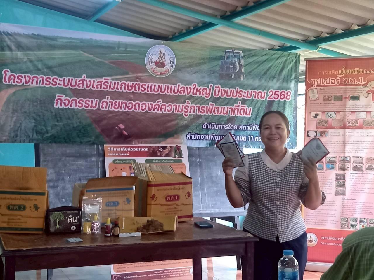 วันที่ 30 เมษายน - 1 พฤษภาคม 2568 นายธรรมรัฐ พุทธะสุภะ ผู้อำนวยการสถานีพัฒนาที่ดินกระบี่ มอบหมายให้นางสาวสุภา ออมจิตร นักวิชาการเกษตรชำนาญการ และนายสำรวย มะลิวงค์ นักวิชาการเกษตร จัดอบรม "ถ่ายทอดองค์ความรู้การพัฒนาที่ดิน" โครงการระบบส่งเสริมเกษตรแบบแปลงใหญ่ ปีงบประมาณ 2568 ให้แก่สมาชิกแปลงใหญ่ยางพาราตำบลเขาดิน ณ ที่ทำการแปลงใหญ่ยางพาราบ้านเขาดิน หมู่ที่ 5 ตำบลเขาดิน อำเภอเขาพนม และแปลงใหญ่ปาล์มน้ำมันตำบลเขาคราม ณ มัสยิดบ้านในไร่ หมู่ที่ 5 ตำบลเขาคราม อำเภอเมืองกระบี่ จังหวัดกระบี่ เพื่อให้สมาชิกได้เพิ่มพูนความรู้ด้านการพัฒนาที่ดิน สามารถพัฒนาคุณภาพดินในพื้นที่แปลงเกษตรกรที่เข้าร่วมโครงการระบบส่งเสริมเกษตรแบบแปลงใหญ่ให้มีศักยภาพ มีความเหมาะสมในการผลิตพืช และใช้ประโยชน์ที่ดินได้อย่างยั่งยืน
