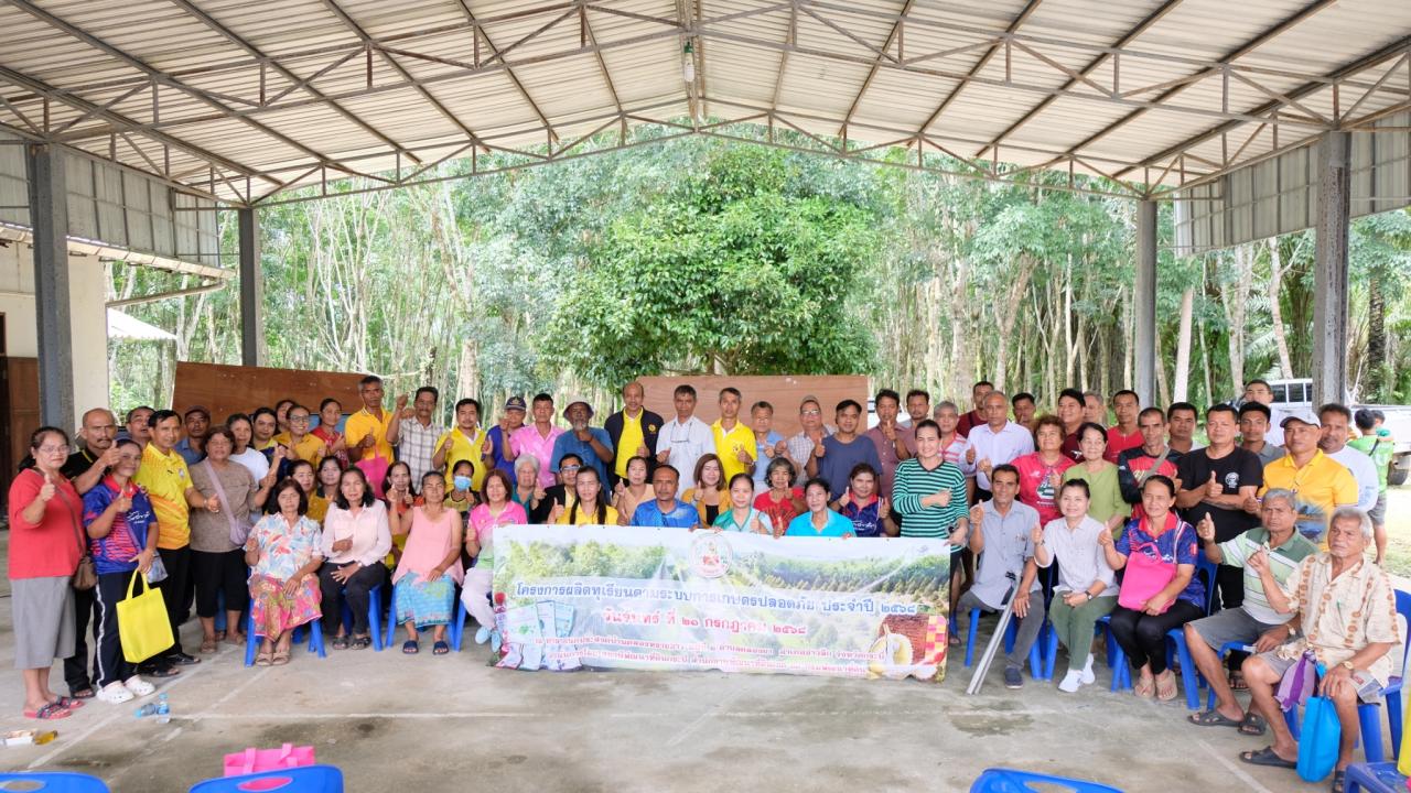 วันจันทร์ ที่ 21 กรกฎาคม 2568 เวลา 09.00 น. นายธรรมรัฐ พุทธะสุภะ ผู้อำนวยการสถานีพัฒนาที่ดินกระบี่ พร้อมด้วย นายวันชัย สุภาพ เจ้าพนักงานการเกษตรอาวุโส นางสาวจุฑามาศ ไกรเทพ นักวิชาการเกษตรปฏิบัติการ และเจ้าหน้าที่ฝ่ายวิชาการเพื่อการพัฒนาที่ดิน ดำเนินงานการจัดอบรมโครงการผลิตทุเรียนตามระบบการเกษตรปลอดภัย ปีงบประมาณ พ.ศ.2568 จำนวน 100 ราย โดยทางสถานีพัฒนาที่ดินกระบี่ได้ให้ความรู้เรื่องดินและการใช้เทคโนโลยีชีวภาพสำหรับผลิตทุเรียนตามระบบการเกษตรปลอดภัย โดยมีนายสมเกียรติ โกฏิกุล ประธานกลุ่มแปลงใหญ่ทุเรียนปลายพระยา เป็นวิทยากรให้ความรู้เรื่องการจัดการสวนทุเรียนเพื่อเตรียมพร้อมการส่งออก และหัวข้อโรค แมลงศัตรูที่สำคัญ และการป้องกันกำจัด นางสาวจารุภา รอดทุกข์ เจ้าพนักงานการเกษตรชำนาญงาน จากศูนย์วิจัยและพัฒนาการเกษตรกระบี่ เป็นวิทยากรให้ความรู้เรื่อง มาตรฐานสินค้าเกษตรด้านพืช GAP ตามมาตรฐานการผลิตเกษตรปลอดภัย และมีนายสุรินทร์ คุ้มเสน นายโกวิทย์ ประทุมสุวรรณ เป็นเกษตรกรต้นแบบสวนทุเรียน ได้แชร์ประสบการณ์การจัดการสวนทุเรียน นายสถิตย์ พรหมรักษา หมอดินอาสาประจำอำเภออ่าวลึก ให้การสาธิตการผลิตปุ๋ยหมัก และน้ำหมักชีวภาพ