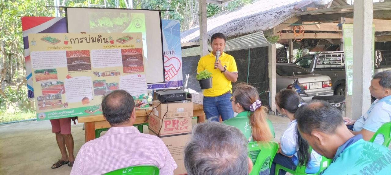วันที่ 19 เมษายน 2567 นายประสิทธิ์ แสงภักดี ผู้อำนวยการสถานีพัฒนาที่ดินกระบี่ มอบหมายให้ นายถนอมพล สังสัน เจ้าพนักงานการเกษตรปฏิบัติงาน เป็นวิทยากร เรื่อง การผสมดินปลูกจากกากตะกอนโรงงานปาล์มน้ำมัน โครงการสานเสวนาส่งเสริมการมีส่วนร่วมและปรึกษาหารือ การเสริมสร้างเครือช่ายผู้นำชุมชนประชาธิปไตยและการเสริมสร้างประชาชนประชาธิปไตย โดยมีวัตถุประสงค์เพื่อเป็นการรับฟัง ข้อมูลข่าวสารจากประชาชนและเปิดโอกาสให้ประชาชนได้มีส่วนร่วมในการแสดงความคิดเห็นในทางที่ถูกต้อง และเหมาะสมในด้านความมั่นคงของประเทศ เช่น สถาบันชาติ ศาสนา พระมหากษัตริย์ ตามนโยบายของกองอำนวยการรักษาความมั่นคงภายในราชอาณาจักร ณ ที่ทำการกลุ่มเกษตรอินทรีย์พอเพียง หมู่ที่ 5 บ้านบางผึ้ง ตำบลโคกยาง อำเภอเหนือคลอง จังหวัดกระบี่