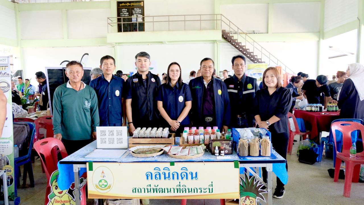 นศุกร์ที่ 13 กุมภาพันธ์ 2569 นางสาวสายใจ หมื่นภักดี ผู้อำนวยการสถานีพัฒนาที่ดินกระบี่ พร้อมด้วยนายสันติชัย นวลศรี เจ้าพนักงานการเกษตรชำนาญงาน นายศุภกร ชูส่งแสง นักวิชาการเกษตรปฏิบัติการ นางสาวนันทิดา แก้วเล็ก เจ้าหน้าที่ระบบงานคอมพิวเตอร์ ร่วมออกหน่วยให้บริการประชาชนภายใต้โครงการคลินิกเกษตรเคลื่อนที่ในพระราชานุเคราะห์ สมเด็จพระบรมโอรสาธิราชสยามมกุฎราชกุมาร และโครงการจังหวัดกระบี่เคลื่อนที่ ครั้งที่ 3 ประจำปีงบประมาณ 2569 โดยมีนายอังกูร ศีลาเทวากูล ผู้ว่าราชการจังหวัดกระบี่ ให้เกียรติเป็นประธานในพิธี โดยสถานีพัฒนาที่ดินกระบี่ ร่วมจัดนิทรรศการงานด้านพัฒนาที่ดิน ให้คำปรึกษาปัญหาการจัดการความอุดมสมบูรณ์ของดินตามแต่บริบทของพื้นที่ การบริหารจัดการเขตเศรษฐกิจสำหรับสินค้าเกษตรที่สำคัญเพื่อสืบสานคุณค่า ต่อยอดภูมิปัญญาโดยเฉพาะการผลิตพืชอินทรีย์ไร้สารพิษเพื่อบริโภคในครัวเรือน โดยใช้เทคโนโลยีชีวภาพของกรมพัฒนาที่ดินหลากหลายจำพวก และสนับสนุนน้ำหมักชีวภาพ พด.2 รวมถึงซุปเปอร์สารเร่ง พด. 1-7 แก่ประชาชนที่เข้ารับบริการนำไปใช้ประโยชน์ในแปลงเกษตรของตนเอง
