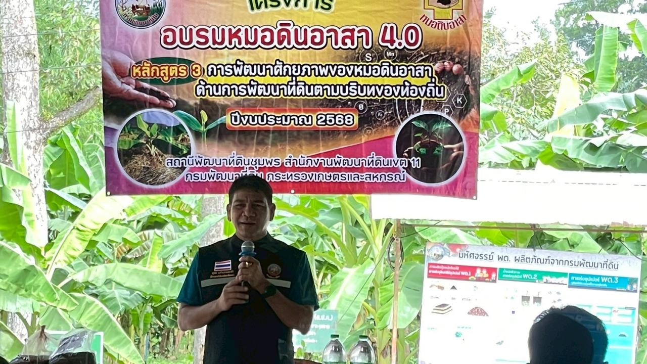ผู้อำนวยการสำนักงานพัฒนาที่ดินเขต11 ให้เกียรติมาเป็นประธานเปิดโครงการอบรมหมอดินอาสา ปีงบประมาณ 2568 หลักสูตร 3 "การพัฒนาศักยภาพของหมอดินอาสา ด้านการพัฒนาที่ดินตามบริบทของท้องถิ่น" โดยจัดกิจกรรมอบรมหมอดินอาสา เพื่อเพิ่มเติมความรู้ และพัฒนาหมอดินอาสาให้เป็น Smart Farmer โดยมีการบรรยายในหัวข้อต่างๆ -การจัดการดินด้วยวัสดุอินทรีย์ที่หาได้ในท้องถิ่นโดยใช้ผลิตภัณฑ์เทคโนโลยีกรมพัฒนาที่ดิน โดยฝ่ายวิชาการเพื่อการพัฒนาที่ดิน
