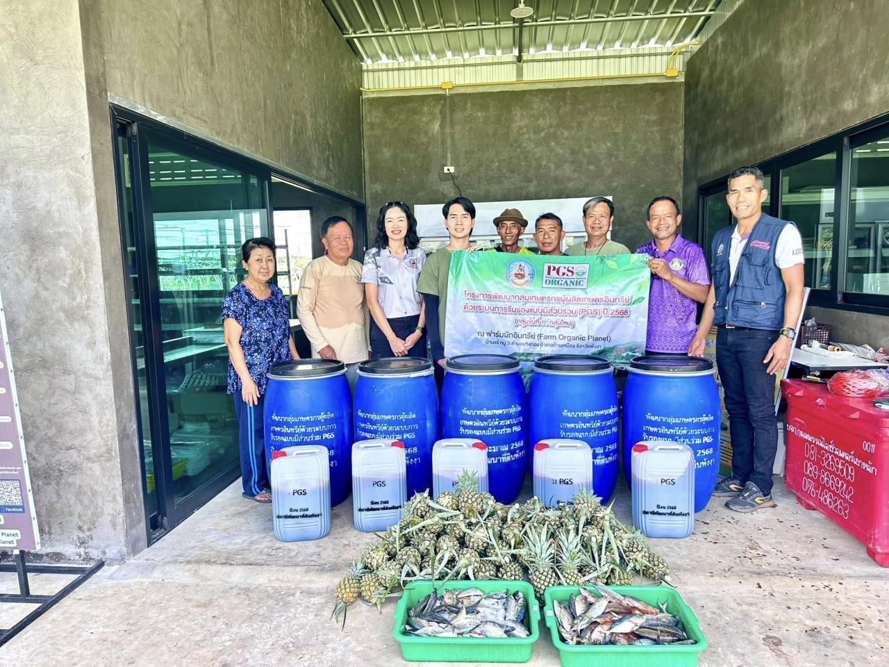 วันที่ 25 เมษายน 2568 ว่าที่รต.พุฒิพงศ์ คำศรี เจ้าพนักงานการเกษตรอาวุโส พร้อมเจ้าหน้าที่สถานีพัฒนาที่ดินพังงา ดำเนินโครงการพัฒนากลุ่มเกษตรกรสู่การรับรองมาตรฐานเกษตรอินทรีย์แบบมีส่วนร่วม (PGS) ขั้นที่ 1 งบประมาณปี 2568 โดยประชุมกลุ่มสมาชิกเพื่อถ่ายทอดความรู้ "มาตรฐานเกษตรอินทรีย์และระบบการรับรองแบบมีส่วนร่วมPGS"การรับรองแบบมีส่วนร่วม (PGS) คือ กระบวนการรับรองผู้ผลิตอินทรีย์ตามหลักการและมาตรฐานเกษตรอินทรีย์ โดยผู้มีส่วนได้ส่วนเสียต้องมีส่วนร่วม วิสัยทัศน์ร่วม ความโปร่งใส กระบวนการเรียนรู้ และความสัมพันธ์แนวราบ พร้อมสนับสนุนปัจจัยการผลิตที่จำเป็นต่อระบบการผลิตเกษตรอินทรีย์ได้แก่ ถัง กากน้ำตาล ปลา ผลไม้ ให้แก่สมาชิกกลุ่ม จำนวน 5 ราย เพื่อขับเคลื่อนเข้าสู่การรับรองขั้นต่อไป ณ ฟาร์มผักอินทรีย์ (Farm Organic Planet) บ้านแร่ หมู่ 3 ตำบลบางทอง อำเภอท้ายเหมือง จังหวัดพังงา![]()