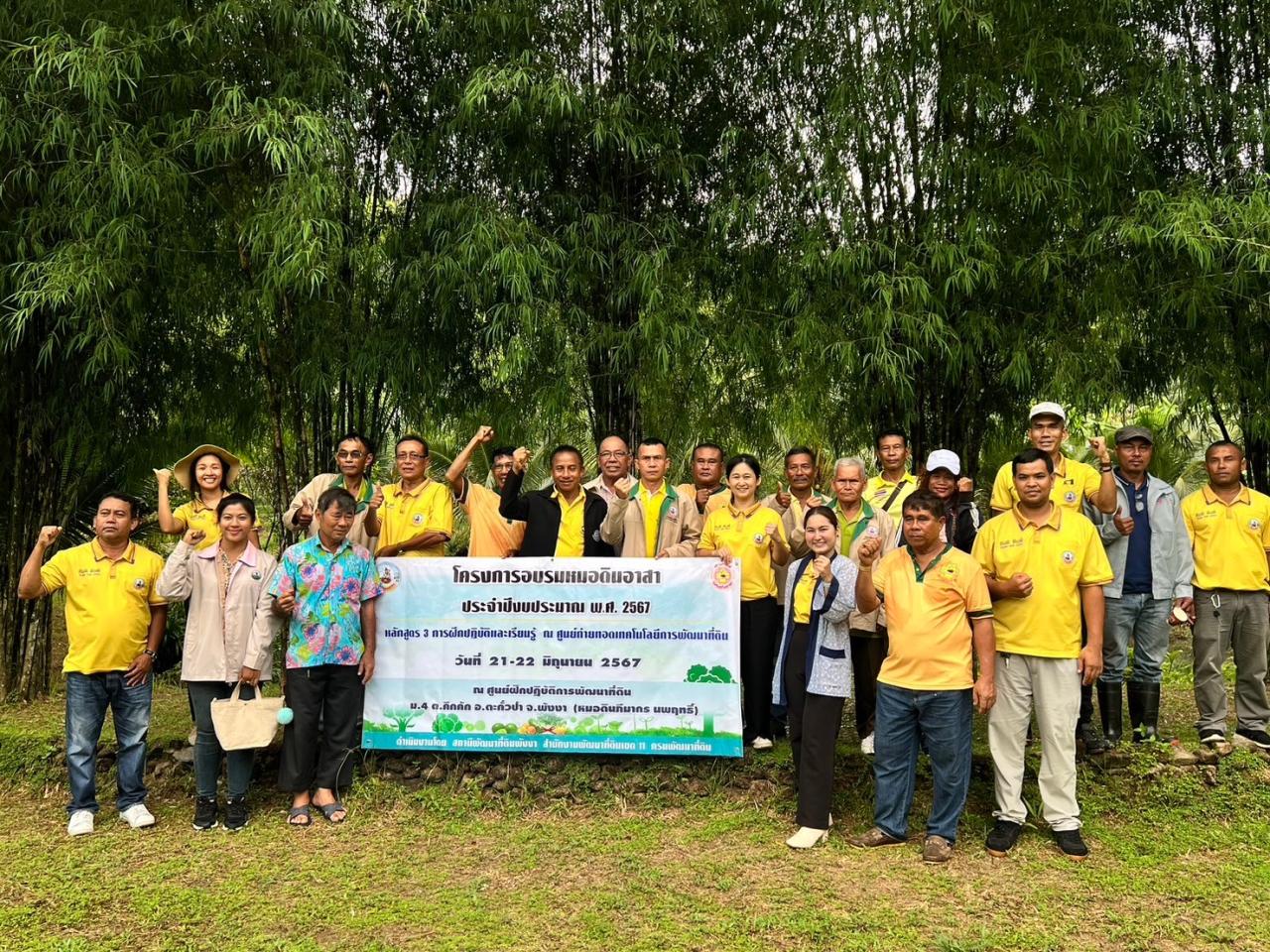นายปัญญา ใจสมุทร ผู้อำนวยการสถานีพัฒนาที่ดินพังงา พร้อมเจ้าหน้าที่ ดำเนินงานโครงการอบรมหมออาสา หลักสูตร 3 การฝึกปฏิบัติและเรียนรู้ ณ ศูนย์ถ่ายทอดเทคโนโลยีการพัฒนาที่ดิน เพื่อเสริมสร้างความเข้มแข็งให้กับเครือข่ายหมอดิน สามารถนำองค์ความรู้ไปปฏิบัติ และประยุกต์ใช้ให้เหมาะสมกับพื้นที่ ภายในงานมีกิจกรรมถ่ายทอดองค์ความรู้ในหัวข้อ การใช้ผลิตภัณฑ์เทคโนโลยีชีวภาพ พด.14 และ พด.15 บรรยายพิเศษโดย หมอดินอาสา นายสุนทร ทองสะอาด : การขยายพันธุ์ทุเรียน จำปาดะ อาวุธลับผลไม้ไทย ศึกษาดูงานการบริหารจัดการ ศูนย์ฝึกปฏฺบัติการพัฒนาที่ดิน โดยหมอดินอาสา นายภีมากร นพฤทธิ์ และตลาดนัดหมอดิน โดยมีหมอดินอาสาร่วมฝึกอบรม จำนวน 10 ราย