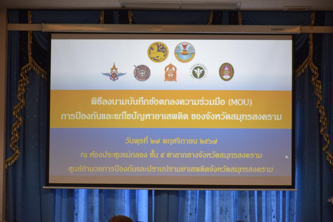 วันที่ 27 พฤศจิกายน 2567 เวลา 09.45 น. นางสาวพนารัตน์ สีหาราช ผู้อำนวยการสถานีพัฒนาที่ดินสมุทรสงคราม ร่วมพิธีลงนามบันทึกข้อตกลงความร่วมมือ MOU การป้องกันและแก้ไขปัญหายาเสพติด ของจังหวัดสมุทรสงคราม ในการประชุมคณะกรมการจังหวัดและหัวหน้าส่วนราชการจังหวัดสมุทรสงคราม ประจำเดือนพฤศจิกายน ครั้งที่ 11/2567 โดยมี นางนิศากร วิศิษฏ์สรอรรถ ผู้ว่าราชการจังหวัดสมุทรสงคราม เป็นประธาน ณ ห้องประชุมแม่กลอง ชั้น 5 ศาลากลางจังหวัดสมุทรสงคราม