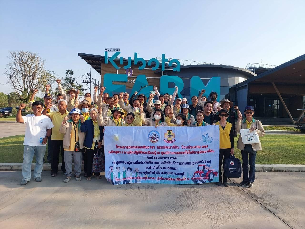 2. KUBOTA Farm อ.บ้านบึง จ.ชลบุรี ฝึกปฏิบัติและเรียนรู้นวัตกรรมการเกษตร การใช้เครื่องมือเครื่องจักรกลทางการเกษตร เพื่อลดต้นทุนการผลิตและเพิ่มประสิทธิภาพการผลิต รวมถึงการเลือกปลูกพืชที่มีมูลค่า การแปรูป การเพิ่มมูลค่าสินค้าเกษตร และการใช้เทคโนโลยีเครื่องจักรกลทางการเกษตรที่เหมาะสมกับสภาพพื้นที่