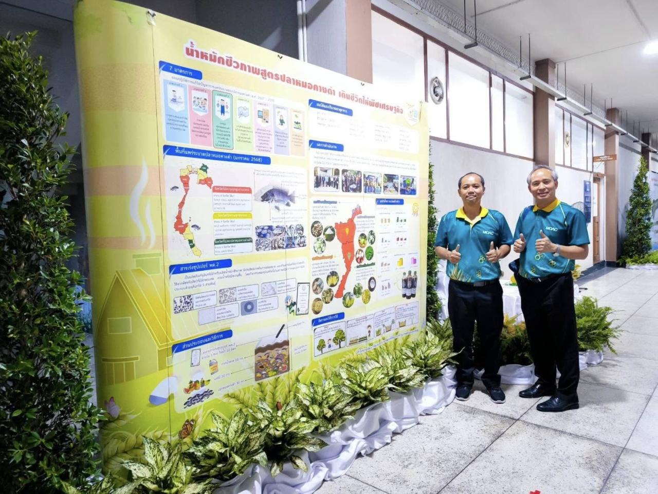 วันที่ 21 พฤษภาคม 2568 สถานีพัฒนาที่ดินสมุทรสาคร ได้ร่วมจัดนิทรรรศการในงานวันสถาปนากรมพัฒนาที่ดิน ครบรอบ 62 ปี ที่จัดขึ้นภายใต้หัวข้อ "ดินนำ น้ำตาม สู่ความยั่งยืนเกษตรไทย" ณ กรมพัฒนาที่ดิน กรุงเทพมหานคร โดยได้จัดนิทรรศการ "น้ำหมักชีวภาพสูตรปลาหมอคางดำ เติมชีวิตให้พืชเศรษฐกิจ" เพื่อแสดงถึงความสำเร็จในการนำน้ำหมักชีวภาพสูตรปลาหมอคางดำ จากสารเร่งซุปเปอร์ พด.2 ไปใช้ในการส่งเสริมและเพิ่มประสิทธิภาพการเจริญเติบโตให้กับพืชเศรษฐกิจหลากหลายชนิด ช่วยเพิ่มความอุดมสมบูรณ์ให้กับดินและช่วยลดต้นทุนการผลิตให้กับเกษตรกรอีกด้วย