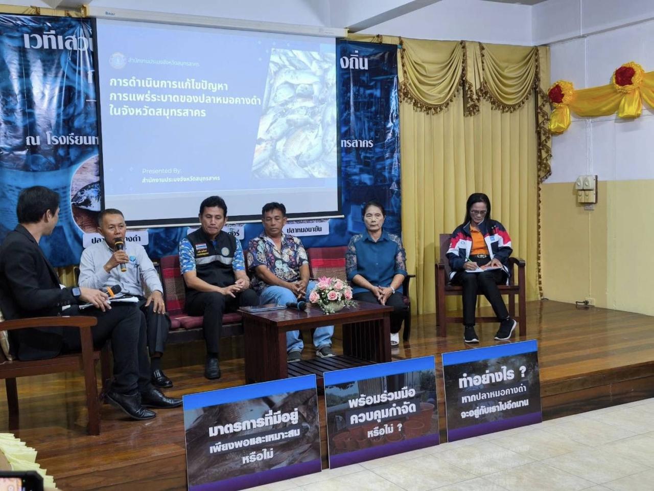 วันพฤหัสบดีที่ 2 ตุลาคม 2568 เวลา 10.00 น. นายธนัชกฤต กลิ่นหวล ผู้อำนวยการสถานีพัฒนาที่ดินสมุทรสาคร ร่วมเวทีการเสวนา การจัดการแก้ไขปัญหาสัตว์น้ำต่างถิ่น จังหวัดสมุทรสาคร กรณีปลาหมอคางดำแพร่ระบาด ซึ่งจัดเวทีการเสวนาโดยสถานีข่าว ท็อปนิวส์ (TOP News) โดยมีผู้ร่วมการเสวนาประกอบด้วย นายเผดิม รอดอินทร์ ประมงจังหวัดสมุทรสาคร นางสมหมาย เย็นงาม ประธานวิสากิจชุมชนบ้านบางพลี ตัวแทนกลุ่มเกษตรกร ตัวแทนประมงพื้นบ้าน และนายอุดร แสงอรุณ บรรณาธิการบริหาร สถานีข่าวท็อปนิวส์ เป็นผู้ดำเนินรายการเสวนา ณ ห้องประชุมโรงเรียนหลวงสินธุ์ราษฎร์รังสฤษฏ์ อำเภอบ้านแพ้ว จังหวัดสมุทรสาคร