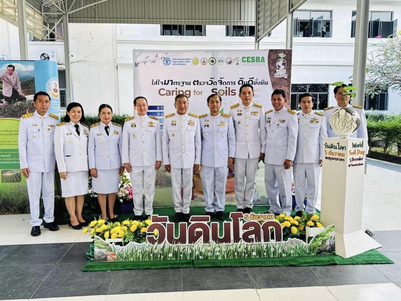 วันพฤหัสบดี ที่ 14 พฤศจิกายน 2567 สถานีพัฒนาที่ดินสมุทรสาคร จัดกิจกรรมเผยแพร่ประชาสัมพันธ์การจัดงานวันดินโลก 2567 (World Soil Day, 2024) ภายใต้หัวข้อ “Caring for soils: measure, monitor, manage” “ใส่ใจมาตรฐาน ตรวจวัดจัดการ ดินดียั่งยืน” ณ ศูนย์วิจัยการอนุรักษ์ดินและน้ำ อ.ปากช่อง จ.นครราชสีมา ให้กับนายวรณัฎฐ์ หนูรอต รองผู้ว่าราชการจังหวัดสมุทรสาคร รักษาราชการแทนผู้ว่าราชการจังหวัดสมุทรสาคร ร้อยตำรวจเอก เขตรัฐ ชาญศิลป์ รองผู้ว่าราชการจังหวัดสมุทรสาคร และหัวหน้าส่วนราชการในจังหวัดสมุทรสาคร ณ ลานสาครบุรี ศาลากลางจังหวัดสมุทรสาคร