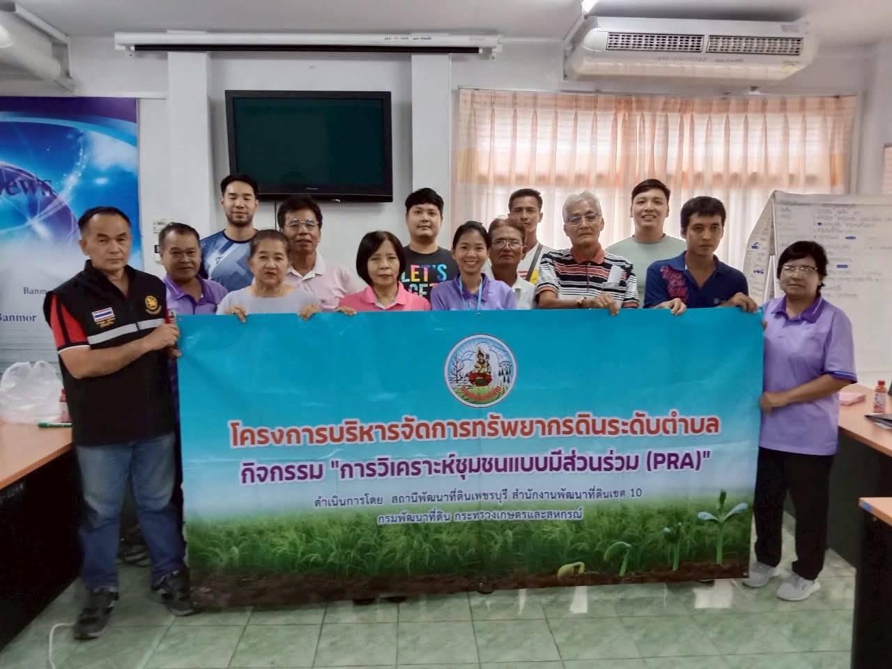 วันที่ 28 พฤษภาคม 2568 นางสาวสุกัญญา องควิวิธสุวร ผู้อำนวยการสถานีพัฒนาที่ดินเพชรบุรี มอบหมายนางสาวขวัญหทัย ปั้นศรี นักวิชาการเกษตรชำนาญการพิเศษ พร้อมด้วยเจ้าหน้าที่สถานีพัฒนาที่ดินเพชรบุรี ลงพื้นที่ จัดการประชุมวิเคราะห์ชุมชนแบบมีส่วนร่วม (Participatory Rural Appraisal : PRA) ประจำปีงบประมาณ 2568 ตามโครงการบริหารจัดการทรัพยากรดินระดับตำบลร่วมกับองค์การบริหารส่วนตำบลบ้านหม้อ ผู้นำชุมชน กำนัน ผู้ใหญ่บ้าน หมอดินอาสา และเกษตรกรทั่ว ไปในพื้นที่ร่วมวางแผนเกี่ยวกับสภาพการใช้ที่ดินของตำบล ความเหมาะสมของพื้นที่กับชนิดพืช หรือประเภทการเกษตรกรรม การจัดการพืชผลเพื่อให้ชุมชนสะท้อนปัญหา แสดงความคิดเห็น จุดเด่น จุดด้อย ของชุมชน รวมถึงการขอสนับสนุน หรือความช่วยเหลือ จากหน่วยงานต่าง ๆ และการแก้ปัญหาเชิงพื้นที่พร้อมทั้งรับฟังปัญหาและความต้องการของเกษตรกรสำหรับวางแผนการใช้ที่ดินให้มีความเหมาะสมกับสภาพดินสามารถ ใช้พื้นที่ได้เต็มศักยภาพของดิน เพื่อใช้ประกอบในการทำรายงานแผนการใช้ที่ดินระดับตำบล ประจำปี พ.ศ. 2568 ณ ห้องประชุมอบต.บ้านหม้อ อำเภอเมือง จังหวัดเพชรบุรี