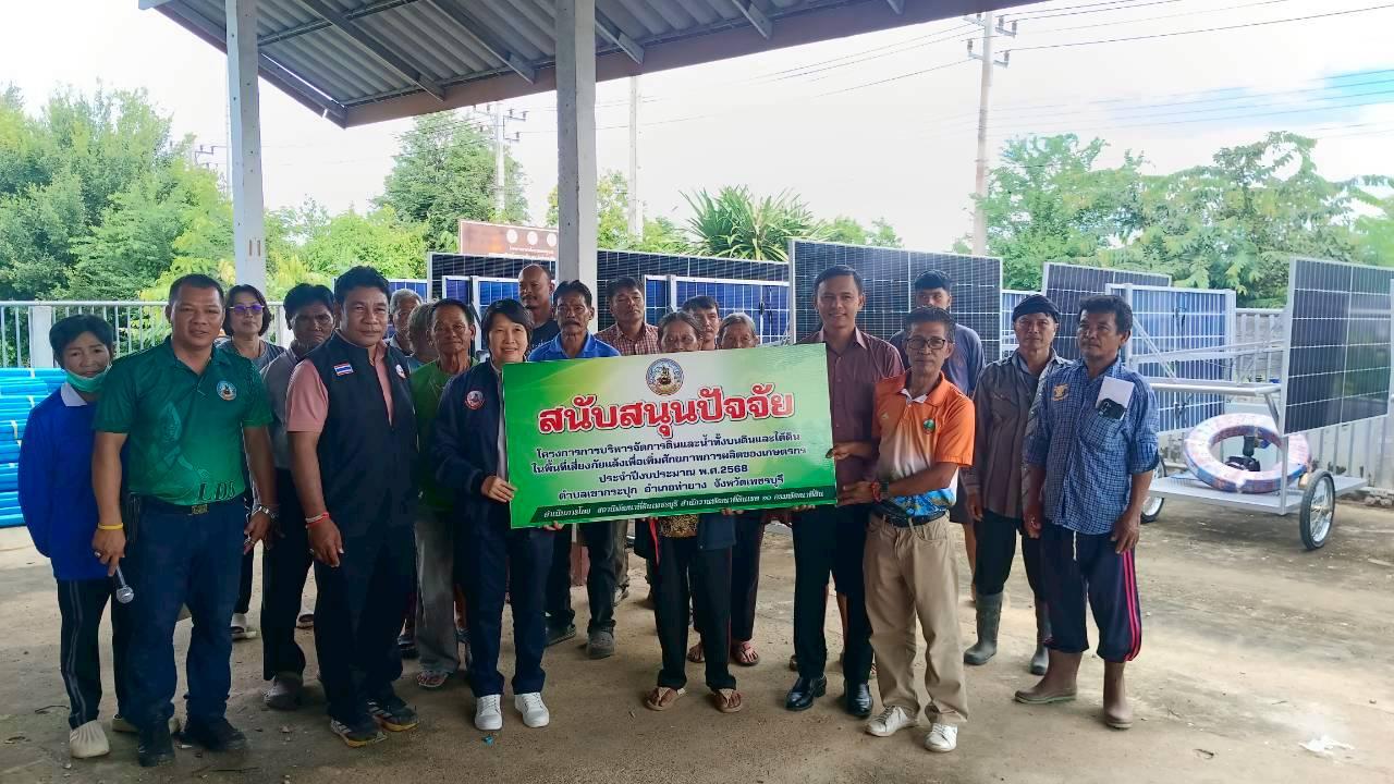 วันที่ 18 กันยายน 2568 สถานีพัฒนาที่ดินเพชรบุรี นำโดย นางสาวสุกัญญา องควิวิธสุวร ผู้อำนวยการสถานีพัฒนาที่ดินเพชรบุรี ได้ดำเนินการส่งมอบ เครื่องสูบน้ำพลังงานแสงอาทิตย์แบบเคลื่อนที่ (ล้อเลื่อน) เพื่อการเกษตร (แบบหอยโข่ง) ให้แก่เกษตรกรในพื้นที่ตำบลเขากระปุก อำเภอท่ายาง จังหวัดเพชรบุรี ภายใต้โครงการบริหารจัดการดินและน้ำทั้งบนดินและใต้ดินในพื้นที่เสี่ยงภัยแล้ง การส่งมอบเครื่องสูบน้ำดังกล่าว ช่วยให้เกษตรกรสามารถใช้ประโยชน์จากสระเก็บน้ำขนาด 1,375 ลูกบาศก์เมตร ได้อย่างเต็มประสิทธิภาพ กระจายน้ำเพื่อการเกษตรได้ทั่วถึง รักษาความชุ่มชื้นของผืนดิน ควบคู่กับมาตรการอนุรักษ์ดินและน้ำ อันเป็นแนวทางสำคัญในการรับมือกับสภาพภูมิอากาศที่เปลี่ยนแปลง