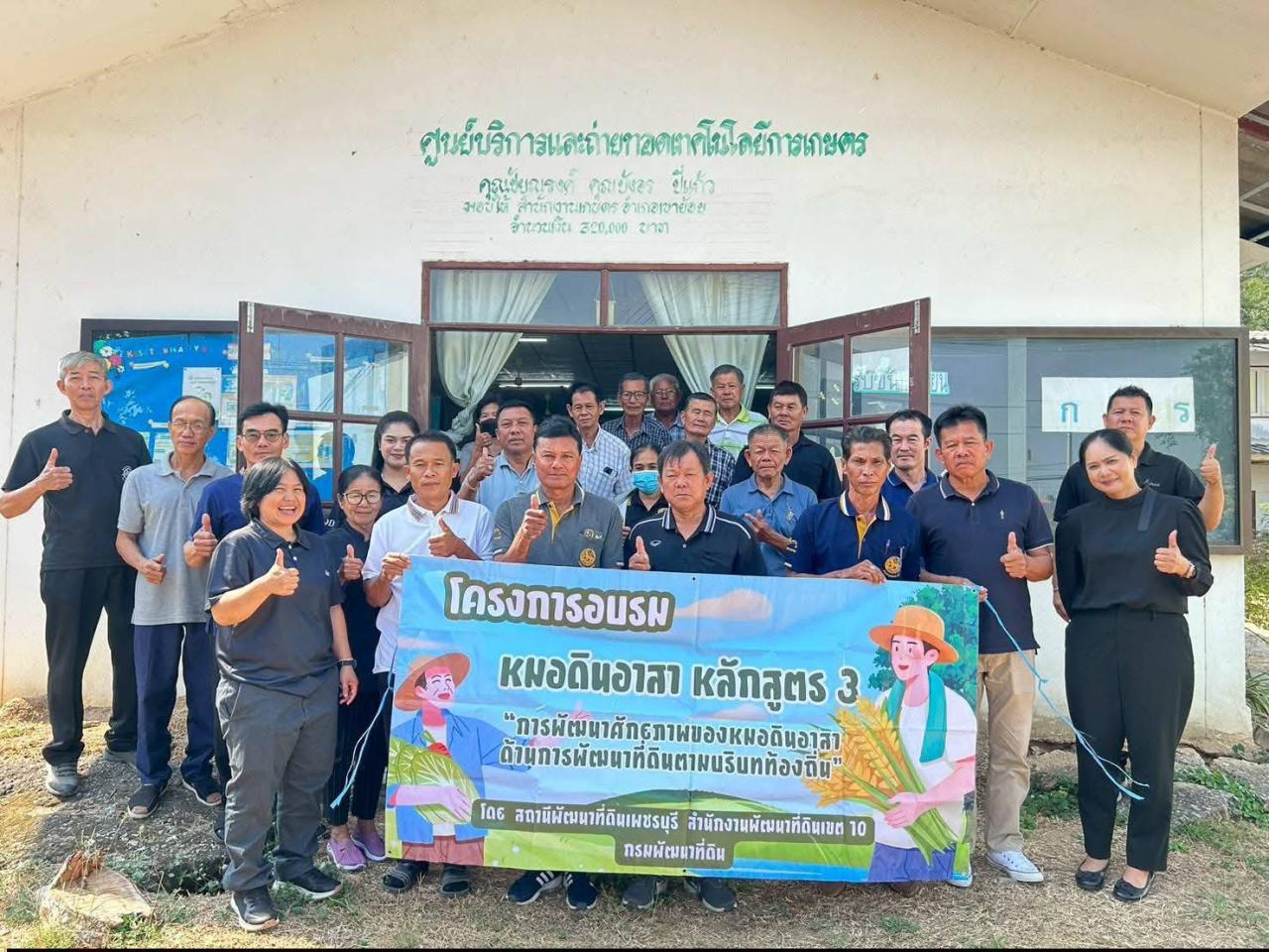 นางสาวสุกัญญา องควิวิธสุวร ผู้อำนวยการสถานีพัฒนาที่ดินเพชรบุรี มอบหมายให้ นางสาวฉวีวรรณ ควันมี เจ้าพนักงานการเกษตรชำนาญงาน ดำเนินการจัดโครงการฝึกอบรมหมอดินอาสา หลักสูตร 3 สำหรับหมอดินอาสาในพื้นที่อำเภอเขาย้อย ณ ห้องประชุมเกษตรอำเภอเขาย้อย จังหวัดเพชรบุรีการจัดโครงการฝึกอบรมในครั้งนี้มีวัตถุประสงค์เพื่อพัฒนาศักยภาพหมอดินอาสาให้มีความรู้ ความเข้าใจด้านการจัดการทรัพยากรดินอย่างถูกต้องตามหลักวิชาการ เสริมสร้างทักษะในการถ่ายทอดความรู้ด้านการอนุรักษ์และฟื้นฟูดินให้แก่เกษตรกรในพื้นที่ รวมถึงสนับสนุนการดำเนินงานตามภารกิจของกรมพัฒนาที่ดินในระดับชุมชนให้มีความเข้มแข็งและยั่งยืน