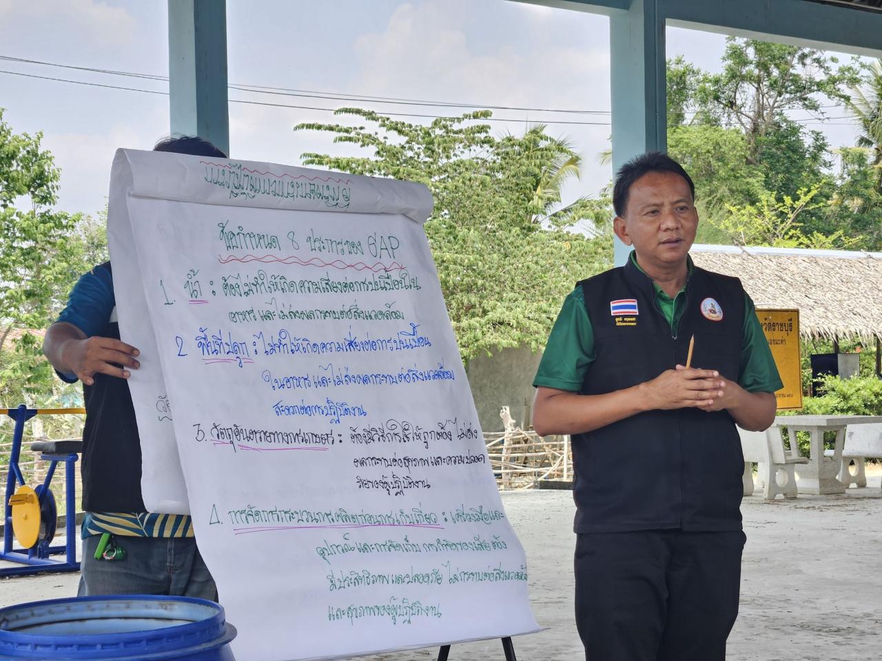 นายชูชาติ ตรุษเพชร นักวิชาการเกษตรชำนาญการพิเศษ พร้อมด้วย น.ส.ชาริตา ครุฑน้อย นักวิชาการเกษตร สพด.ราชบุรี ลงพื้นที่จัดกิจกรรมผลิตน้ำหมักสมุนไพรไล่แมลง และให้ความรู้เรื่องการปฏิบัติทางการเกษตรที่ดี (GAP) ให้กับกลุ่มเกษตรกร “โครงการพัฒนาต่อยอดกลุ่มส่งเสริมการใช้สารอินทรีย์ลดการใช้สารเคมีฯ (GAP)” ในพื้นที่ อำเภอสวนผึ้ง และอำเภอจอมบึง จังหวัดราชบุรี จำนวน 3 กลุ่ม เกษตรกร 30 ราย โดยได้ดำเนินการแล้วเสร็จทั้งหมด 9 กลุ่ม เกษตรกรจำนวน 90 ราย