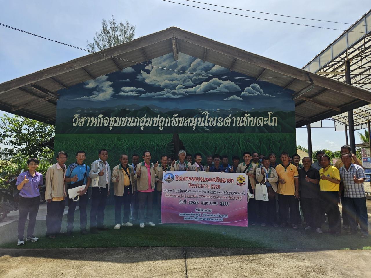 นายชูชาติ ตรุษเพชร นักวิชาการเกษตรชำนาญการพิเศษ พร้อมด้วยเจ้าหน้าที่ สพด.ราชบุรี จัดโครงการอบรมหมอดินอาสา หลักสูตรที่3 “การพัฒนาศักยภาพของหมอดินอาสา ด้านการพัฒนาที่ดิน ตามบริบทของท้องถิ่น” ณ ที่ทำการแปลงใหญ่สมุนไพร ต.ด่านทับตะโก อ.จอมบึง จ.ราชบุรี