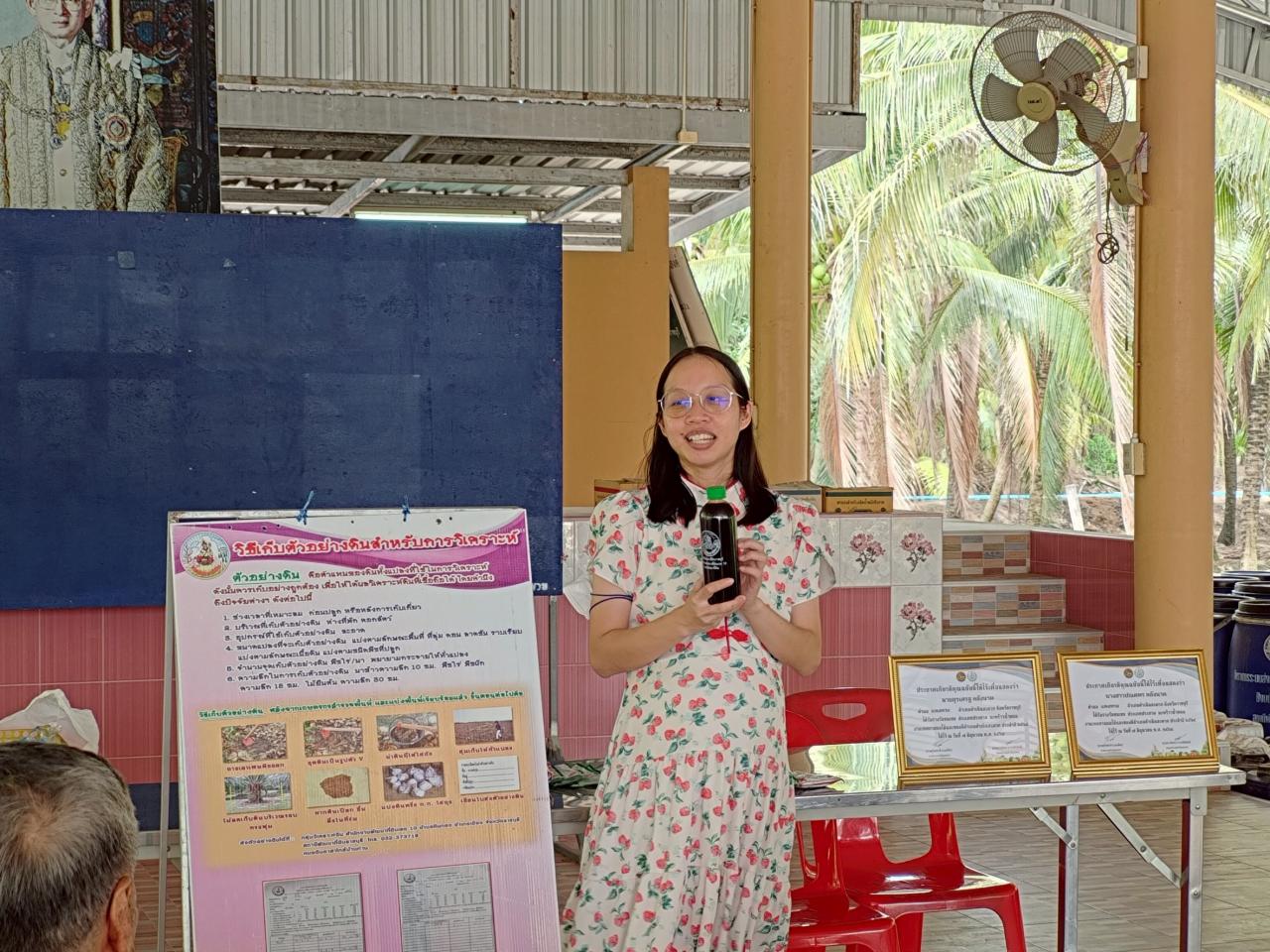 น.ส.ฐิศิรัตน์ กมลจรัสวัฒนา นักวิชาการเกษตรปฏิบัติการ พร้อมเจ้าหน้าที่สถานีพัฒนาที่ดินราชบุรี จัดกิจกรรมถ่ายทอดองค์ความรู้ การพัฒนาที่ดิน ให้กับกลุ่มแปลงใหญ่มะพร้าว หมู่ 10 ตำบลแพงพวย อำเภอดำเนินสะดวก “ ภายใต้โครงการระบบส่งเสริมเกษตรแบบแปลงใหญ่ ” สนับสนุนสารเร่งพด. น้ำหมักชีวภาพจากพด. 2 และถ่ายทอดองค์ความรู้ด้าน การใช้สารเร่งซุปเปอร์พด.ต่าง ๆ เช่น การผลิตปุ๋ยอินทรีย์ การผลิตน้ำหมักชีวภาพจากพด.2 เพื่อเกษตรกรสามารถนำความรู้ที่ได้มาปรับใช้ในแปลงเกษตรของตนเองได้ ณ ศาลาอเนกประสงค์หมู่ 10 ตำบลแพงพวย อำเภอดำเนินสะดวก จังหวัดราชบุรี
