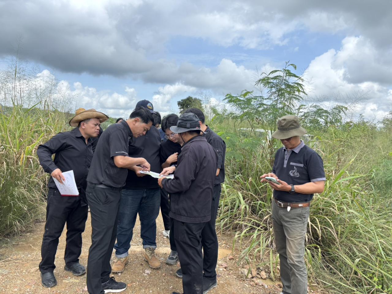 นายคำนึง แสงขำ ผู้อำนวยการสำนักงานพัฒนาที่ดินเขต 10 รักษาการในตำแหน่ง ผู้อำนวยการสถานีพัฒนาที่ดินราชบุรี มอบหมาย นายชูชาติ ตรุษเพชร นักวิชการเกษตรชำนาญการพิเศษและเจ้าหน้าที่สถานีพัฒนาที่ดินราชบุรี ร่วมกับเจ้าหน้าที่สำนักวิศวกรรมเพื่อการพัฒนาที่ดิน กรมพัฒนาที่ดิน เจ้าหน้าที่กลุ่มสำรวจเพื่อทำแผนที่สำนักงานพัฒนาที่ดินเขต 10 เจ้าหน้าที่สำนักงานการปฏิรูปที่ดินเพื่อเกษตรกรรมจังหวัดราชบุรี (ส.ป.ก.) และผู้นำชุมชน ลงพื้นที่สำรวจเพื่อออกแบบงานก่อสร้างระบบอนุรักษ์ดินและน้ำในพื้นที่จัดที่ดินทำกินในเขตปฏิรูปที่ดิน (ราชบุรีโมเดล) ครอบคลุมพื้นที่ 1,500 ไร่ ในพื้นที่หมู่ 10 บ้านกลาง ตำบลรางบัว อำเภอจอมบึง จังหวัดราชบุรี