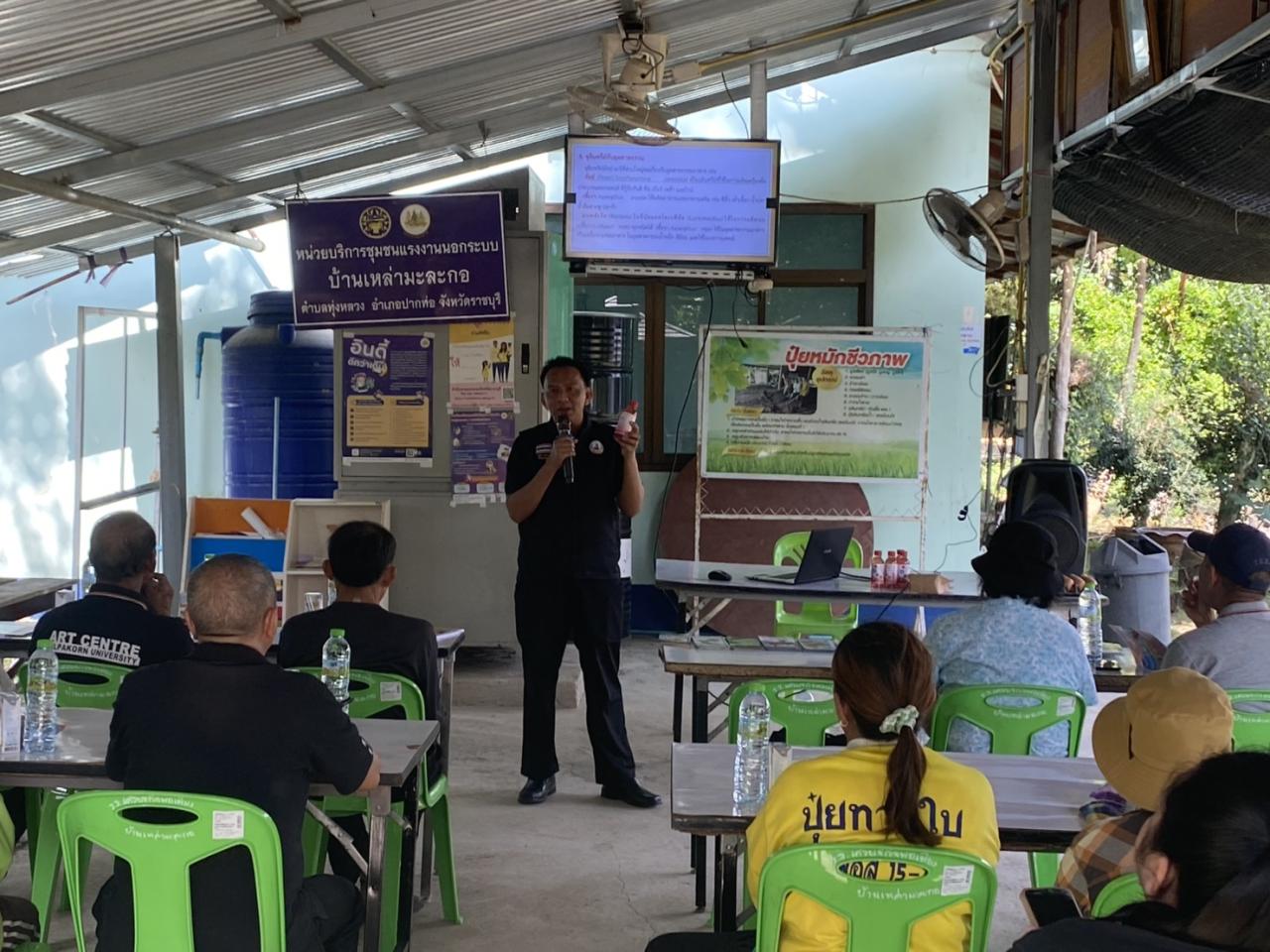 นายหนูจันทร์ ศิริสุวรรณ์ ผู้อำนวยการสถานีพัฒนาที่ดินราชบุรี มอบหมายให้นายชูชาติ ตรุษเพชร นักวิชาการเกษตรชำนาญการพิเศษ เป็นวิทยากรบรรยายให้ความรู้แก่เกษตรกรสมาชิกศูนย์จัดการดินปุ๋ยชุมชนบ้านเหล่ามะละกอ (ศดปช.) ในหัวข้อ "การใช้จุลินทรีย์เพิ่มประสิทธิภาพการผลิตทางการเกษตร" พร้อมกับสาธิตการขยายเชื้อ พด.15 แบคทีเรียสังเคราะห์แสงให้กับเกษตรกร จำนวน 10 ราย ณ ศูนย์จัดการดินปุ๋ยชุมชนบ้านเหล่ามะละกอ หมู่ 15 ตำบลทุ่งหลวง อำเภอปากท่อ จังหวัดราชบุรี