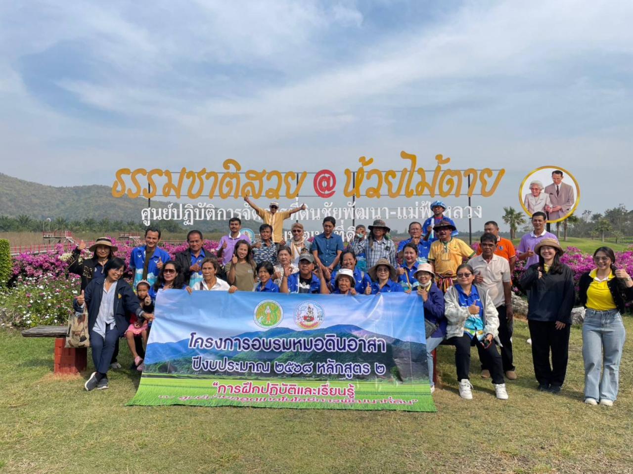 ศูนย์ปฏิบัติการจัดการที่ดินชัยพัฒนา-แม่ฟ้าหลวง ให้การต้อนรับคณะหมอดินอาสาและเจ้าหน้าที่จากสถานีพัฒนาที่ดินสมุทรปราการ จำนวน 40 คน พร้อมนำคณะเรียนรู้การทำเกษตรแบบทฤษฎีใหม่ การเลี้ยงไส้เดือนดิน การปลูกผักยกพื้น การปรับปรุงดินเพื่อปลูกกาแฟพันธุ์โรบัสต้า อีกทั้งเที่ยวชมทุ่งทานตะวัน บริเวณอ่างเก็บน้ำห้วยไม้ตาย