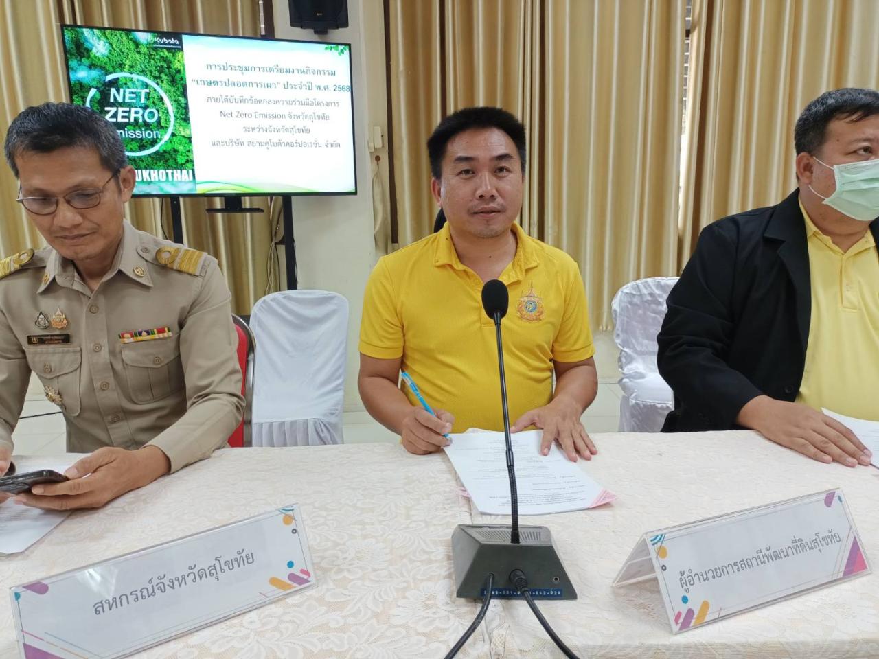 วันจันทร์ที่ 17 กุมภาพันธ์ 2568 เวลา 13.30 น. นายวิวรรธน์ภูมิ พรอำนวยลาภ ผู้อำนวยการสถานีพัฒนาที่ดินสุโขทัย มอบหมายให้นายมนต์ชัย พรมลอองวัน นักวิชาการเกษตรชำนาญการ นางสาวอทิตยา อินทร์ประสิทธิ์ นักวิชาการเกษตรปฏิบัติการ และนางสาวช่อผกา แก้วลำยวง นักวิชาการเกษตร ร่วมประชุมการเตรียมงานกิจกรรม "เกษตรปลอดการเผา" ประจำปี พ.ศ. 2568 ภายใต้บันทึกข้อตกลงความร่วมมือโครงการ Net Zero Emission จังหวัดสุโขทัย ระหว่างจังหวัดสุโขทัย และ บริษัท สยามคูโบต้าคอร์ปอเรชั่น จำกัด โดยมีกำหนดการจัดกิจกรรม ในวันที่ 4 เมษายน 2568 ณ วิทยาลัยการอาชีพศรีสำโรง ตำบลสามเรือน อำเภอศรีสำโรง จังหวัดสุโขทัย