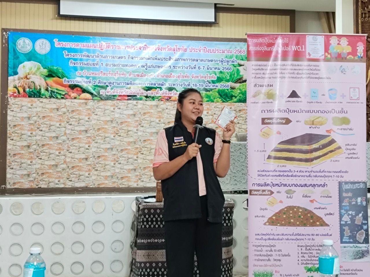 ร่วมเป็นวิทยากรการฝึกอบรมเกษตรกรตามแผนปฏิบัติราชการของจังหวัดสุโขทัย โครงการพัฒนาด้านการเกษตร กิจกรรมหลักเพิ่มประสิทธิภาพการตลาดเกษตรกรผู้ปลูกผัก โดยมีวัตถุประสงค์เพื่อส่งเสริมการผลิตและการเพิ่มมูลค่าสินค้าพืชผักและเพื่อให้ความรู้ด้านการเพิ่มประสิทธิภาพด้านการตลาดแก่เกษตรกรผู้ผลิตพืชผัก โดยให้ความรู้เรื่องความสำคัญของการผลิตผักปลอดภัย การจัดการดินและน้ำ และการควบคุมศัตรูพืชโดยชีววิธี เป้าหมายเกษตรกร 50 ราย ณ บ้านหมอรีสอร์ทสุโขทัย ตำบลเมืองเก่า อำเภอเมืองสุโขทัย จังหวัดสุโขทัย