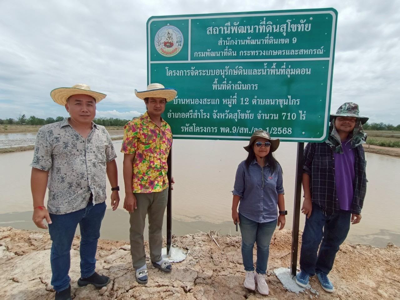 สถานีพัฒนาที่ดินสุโขทัย ดำเนินการตรวจรับงานจ้างโครงการจัดระบบอนุรักษ์ดินและน้ำ พื้นที่ลุ่ม-ดอน ประจำปีงบประมาณ 2568