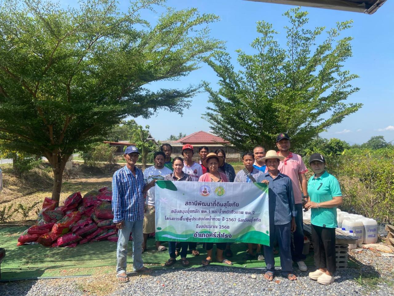 โดยสถานีพัฒนาที่ดินสุโขทัย ได้รับมอบหมายให้สนับสนุนปุ๋ยหมัก พด.1 และน้ำหมัก พด.2 เพื่อฟื้นฟูและปรับปรุงดินหลังน้ำลด ให้เกษตรกรสามารถใช้ประโยชน์ที่ดินเพื่อการเกษตรได้โดยดำเนินการในพื้นที่เกษตรกร อ.ศรีสำโรง จำนวน 17 ราย ณ ที่ทำการผู้ใหญ่บ้าน หมู่ 6 ต.วังใหญ่ อ.ศรีสำโรง จังหวัดสุโขทัย