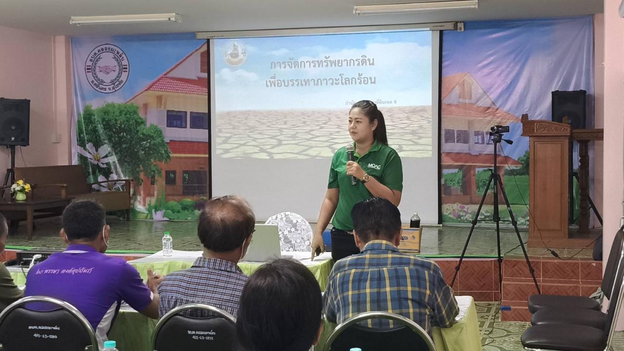 วันพฤหัสบดีที่ 29 พฤษภาคม 2568 นายวิวรรธน์ภูมิ พรอำนวยลาภ ผู้อำนวยการสถานีพัฒนาที่ดินสุโขทัย มอบหมายให้นางสาวจันทร์จิรา มณีเย็น นักวิชาการเกษตรปฏิบัติการ พร้อมด้วย นายศุภชัย ถาวร นักวิชาการเกษตร และนางสาวพิชชาภา พัตจร เจ้าหน้าที่การเกษตร ร่วมเป็นวิทยากรในโครงการจัดฝึกอบรม หลักสูตรการฝึกอบรมเกษตรกรเพื่อเสริมสร้างภูมิคุ้มกันต่อผลกระทบจากการเปลี่ยนแปลงสภาพภูมิอากาศในประเทศไทย ด้วยการจัดการอนุรักษ์ดินและน้ำในพื้นที่จังหวัดพิษณุโลก สุโขทัย และอุตรดิตถ์ ครั้งที่ 2 ในเรื่องของการจัดการทรัพยากรดินเพื่อบรรเทาภาวะโลกร้อน ดินและการจัดการดิน และการเก็บตัวอย่างดินเพื่อการวิเคราะห์ ให้กับเกษตรที่เข้าร่วมโครงการฯ ณ ห้องประชุมองค์การบริหารส่วนตำบลคลองมะพลับ อำเภอศรีนคร จังหวัดสุโขทัย