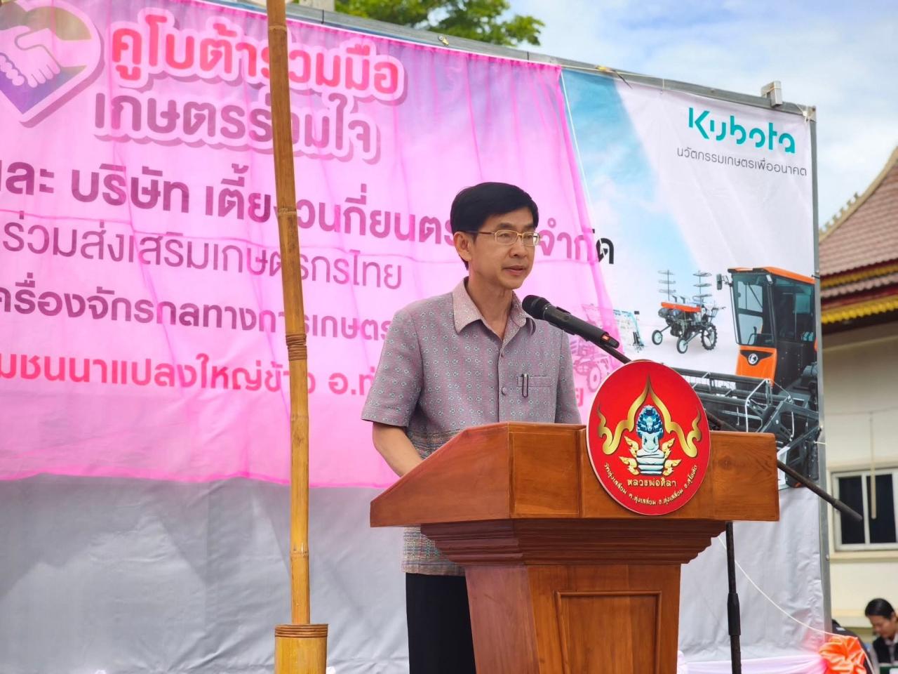 วันศุกร์ที่ 26 กันยายน 2568 นายวิวรรธน์ภูมิ พรอำนวยลาภ ผู้อำนวยการสถานีพัฒนาที่ดินสุโขทัย ร่วมกิจกรรมการส่งมอบเครื่องจักรกลการเกษตร รถเกี่ยวนวดข้าว รุ่น KIS DC-108X Cabin ให้กับกลุ่มวิสาหกิจชุมชนนาแปลงใหญ่ข้าวตำบลทุ่งเสลี่ยม โดยมี นายธีรยุทธ สำราญทรัพย์ รองผู้ว่าราชการจังหวัดสุโขทัย เป็นประธานการส่งมอบฯ ผู้บริหารบริษัท สยามคูโบต้าคอร์ปอเรชั่น จำกัด