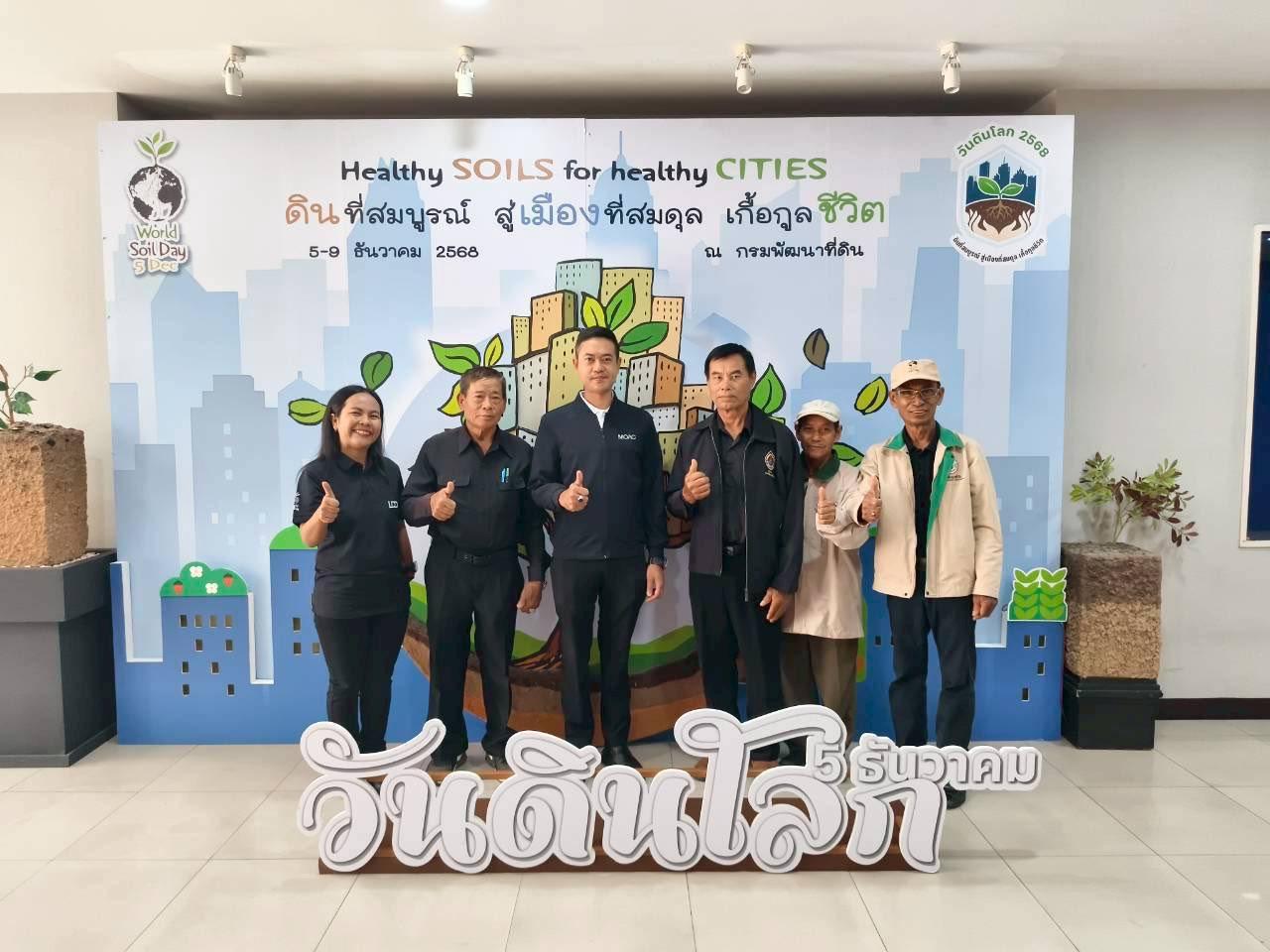 และเจ้าหน้าที่สถานีพัฒนาที่ดินสุโขทัย นำหมอดินอาสาจังหวัดสุโขทัย จำนวน 10 ราย เข้าร่วมกิจกรรมวันดินโลก ปี 2568 ภายใต้โครงการอบรมหมอดินอาสากรมพัฒนาที่ดิน 4.0 หลักสูตรที่ 1 การศึกษาดูงานและแลกเปลี่ยนเรียนรู้ในงานวันดินโลก ประจำปีงบประมาณ 2569 เพื่อให้หมอดินอาสาตระหนักถึงความสำคัญของทรัพยากรดิน โดยเน้นความสำคัญกับ “การดูแลรักษาดินในเมือง” ต้องรู้จักคุณสมบัติดินแต่ละชนิด โดยอาศัยความสำคัญกับการบริหารจัดการทรัพยากรดินในเมือง จากการขยายตัวของชุมชนเมือง เพื่อส่งเสริมการพัฒนาด้านเศรษฐกิจ สังคม และสิ่งแวดล้อมที่สมดุล สำหรับการจัดงานวันดินโลกในปีนี้ กระทรวงเกษตรและสหกรณ์ โดยกรมพัฒนาที่ดิน ร่วมกับหน่วยงานที่เกี่ยวข้องจัดขึ้นต่อเนื่องเป็นปีที่ 12 ภายใต้ห้วข้อ “Healthy Soils For Healthy Cities ดินที่สมบูรณ์ สู่เมืองที่สมดุล เกื้อกูลชีวิต” ระหว่างวันที่ 5-9 ธันวาคม 2568 ณ กรมพัฒนาที่ดิน แขวงลาดยาว เขตจตุจักร กรุงเทพมหานคร