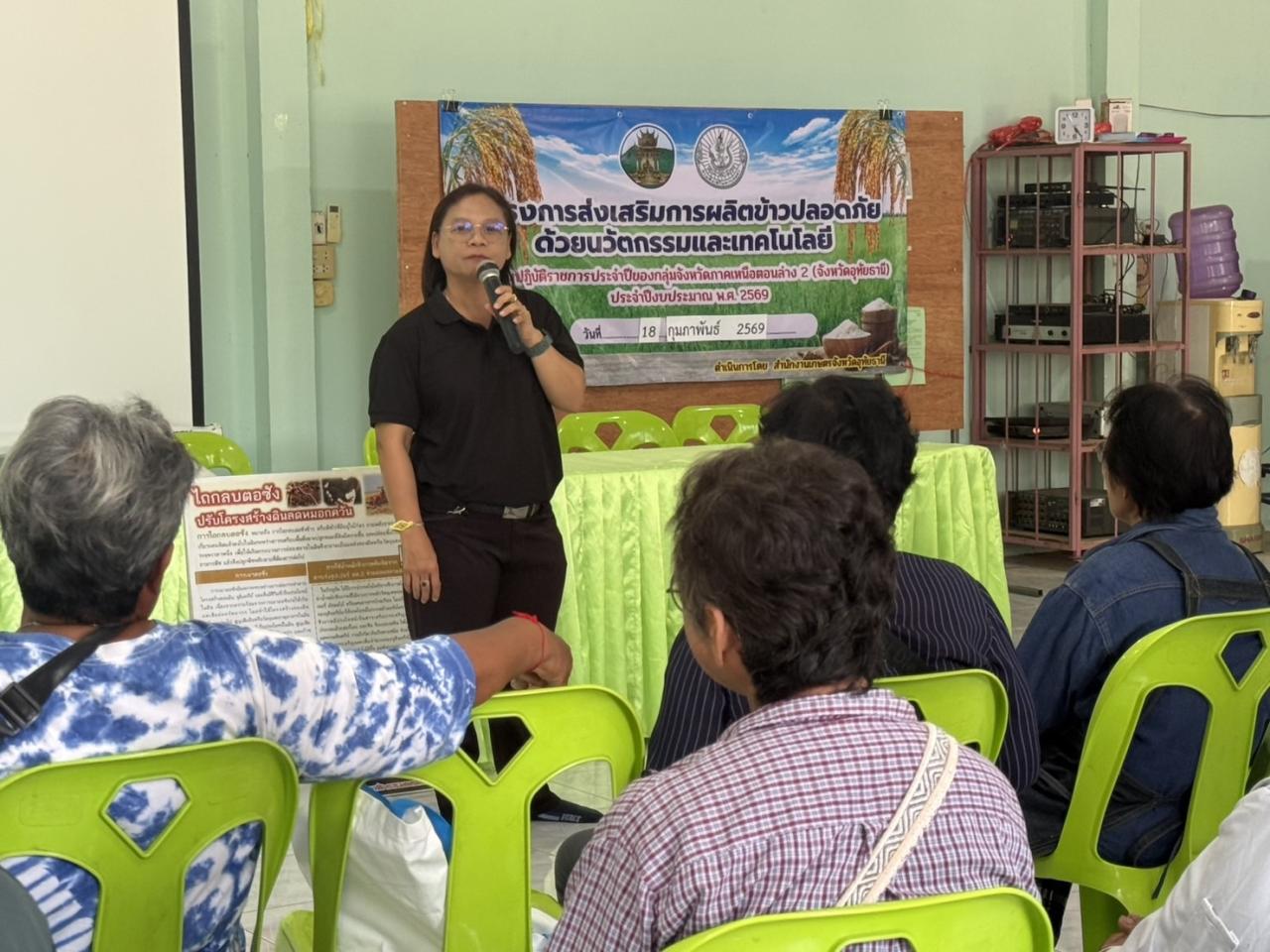 🎤🎙️วันที่ 18 กุมภาพันธ์ 2569 สถานีพัฒนาที่ดินอุทัยธานี โดยนางสาวชุลีพร วัฒนจินดารัตน์ นักวิชาการเกษตรชำนาญการ และว่าที่ ร.ต. สมพงษ์ บัวเหมือน นักวิชาการเกษตร ร่วมเป็นวิทยากรอบรมถ่ายทอดเทคโนโลยีการเพิ่มประสิทธิภาพการผลิตและการเพิ่มมูลค่าผลผลิตข้าวปลอดภัยด้วยนวัตกรรมและเทคโนโลยี ภายใต้โครงการส่งเสริมการผลิตข้าวปลอดภัยด้วยนวัตกรรมและเทคโนโลยี ตามแผนปฏิบัติราชการประจำปีของกลุ่มจังหวัดภาคเหนือตอนล่าง 2 ประจำปีงบประมาณ พ.ศ. 2569 ให้แก่กลุ่มส่งเสริมอาชีพเกษตรกรผู้ผลิตข้าวตำบลทุ่งนางาม ณ ศาลาประชาคม ม.4 ต.ทุ่งนางาม อ.ลานสัก จ.อุทัยธานี🥰