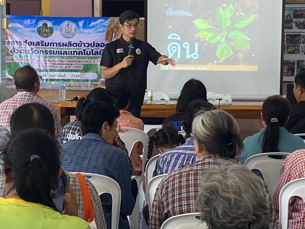 📌วันที่ 24 กุมภาพันธ์ 2569 สถานีพัฒนาที่ดินอุทัยธานี โดยนายบรรพต ศรีเดช เจ้าพนักงานการเกษตรชำนาญงาน และนายสังวาลย์ ชาญธัญการ นักวิชาการเกษตร เข้าร่วมเป็นวิทยากรอบรมถ่ายทอดเทคโนโลยีการเพิ่มประสิทธิภาพการผลิตและการเพิ่มมูลค่าผลผลิตข้าวปลอดภัยด้วยนวัตกรรมและเทคโนโลยี ภายใต้โครงการส่งเสริมการผลิตข้าวปลอดภัยด้วยนวัตกรรมและเทคโนโลยี ครั้งที่ 1 ในหัวข้อความอุดมสมบูรณ์ของดิน การเก็บตัวอย่างดิน และการใช้ปุ๋ยเคมีอย่างมีประสิทธิภาพ ให้แก่กลุ่มส่งเสริมอาชีพเกษตรกรผู้ปลูกข้าวตำบลน้ำซึม ณ ศาลาประชุม ม.4 ต.น้ำซึม อ.เมืองฯ จ.อุทัยธานี