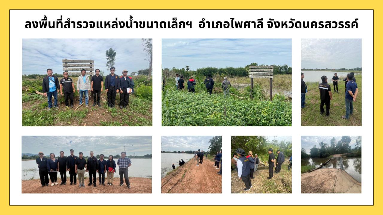 นที่ 21 พฤศจิกายน 2568 สถานีพัฒนาที่ดินนครสวรรค์ โดยนายกฤษณพล แสงสุวรรณ นักวิชาการเกษตรชำนาญการ และนายเอกพงษ์ โพธิ์งาม นักวิชาการเกษตร ลงพื้นที่สำรวจแหล่งน้ำขนาดเล็ก ฯ ร่วมกับคณะทำงานสำรวจ ออกแบบ และซ่อมแซมแหล่งน้ำขนาดเล็กระดับอำเภอ โครงการซ่อมแซมแหล่งน้ำขนาดเล็กของส่วนราชการที่ยังไม่ได้ถ่ายโอนให้องค์กรปกครองส่วนท้องถิ่น ประจำปี 2569 ระดับกลุ่มอำเภอ พื้นที่ อำเภอไพศาลี จังหวัดนครสวรรค์
