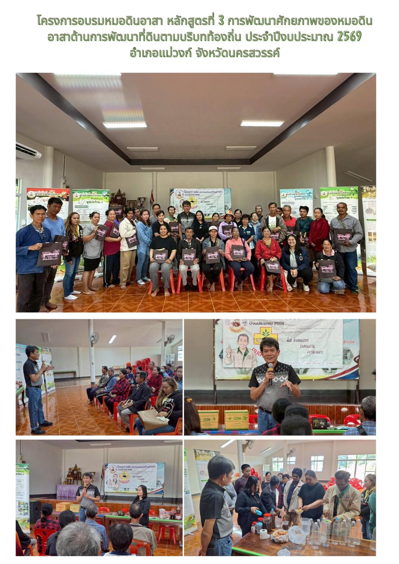 วันที่ 24 ธันวาคม 2568 สถานีพัฒนาที่ดินนครสวรรค์ โดยนายประสงค์ จันทร์สุวรรณ นักวิชาการเกษตรชำนาญการพิเศษ และนางสาวฐานีย์ สุขาวิญญา นักวิชาการเกษตร พร้อมด้วยกลุ่มวิชาการเพื่อการพัฒนาที่ดิน โดยนางสาวกมลวรรณ ทองอ่อน นักวิชาการเกษตร ดำเนินการโครงการอบรมหมอดินอาสา หลักสูตรที่ 3 การพัฒนาศักยภาพของหมอดินอาสาด้านการพัฒนาที่ดินตามบริบทท้องถิ่น ประจำปีงบประมาณ 2569 เพื่อให้หมอดินอาสาได้เรียนรู้เทคโนโลยีในการพัฒนาที่ดินที่เหมาะสมกับสภาพพื้นที่ และแลกเปลี่ยนเรียนรู้การแก้ไขปัญหาด้านดินจากประสบการณ์ในการทำการเกษตรของตนเอง ณ ศูนย์เรียนรู้เกษตรอินทรีย์แบบมีส่วนร่วม (PGS.แม่วงก์) อ.แม่วงก์ จ.นครสวรรค์