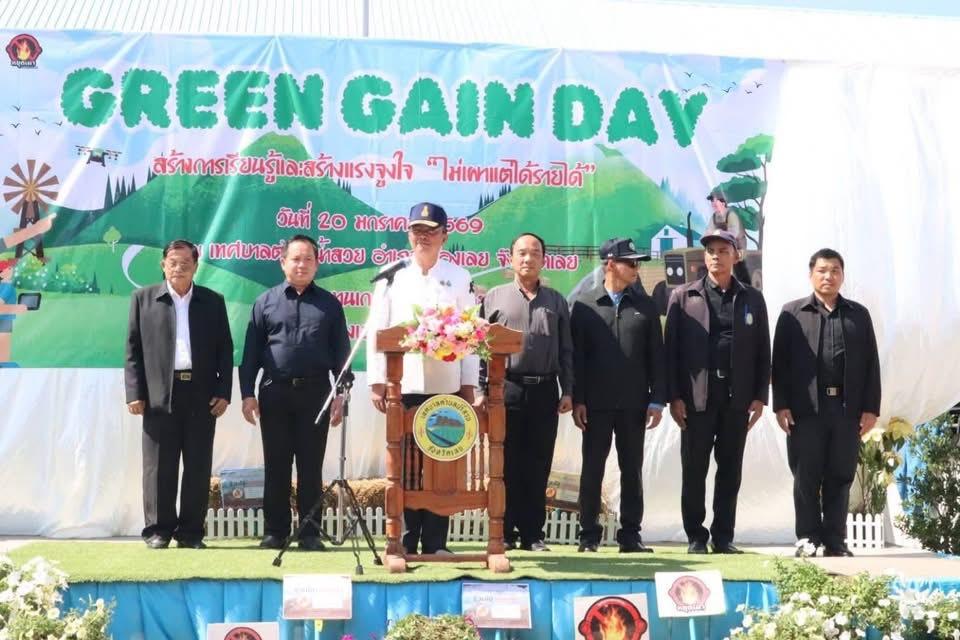 วันอังคารที่ 20 มกราคม พ.ศ. 2569 นางจุฬาลักษณ์ แก้วอ่อน ผู้อำนวยการสถานีพัฒนาที่ดินเลย มอบหมาย นางสาวสมศรี ปางกาง นักวิชาการเกษตร และ นายวงศกร โคกทอง นักวิชาการเกษตร ให้ร่วมเป็นวิทยากรกิจกรรม “Green Gain Day” สร้างการเรียนรู้และสร้างแรงจูงใจ “ไม่เผาแต่ให้รายได้” เพื่อให้ความรู้เรื่องการทำปุ๋ยหมักและวัสดุปลูก พร้อมสนับสนุนสารเร่ง พด.1 และน้ำหมัก พด.2 จำนวน 200 ชุด มีเกษตรกรผู้เข้าร่วมงานจาก 14 อำเภอ จำนวน 200 ราย โดยมี นายกิตติคุณ บุตรคุณ รองผู้ว่าราชการจังหวัดเลยเป็นประธาน ณ เทศบาลตำบลน้ำสวย อำเภอเมืองเลย จังหวัดเลย