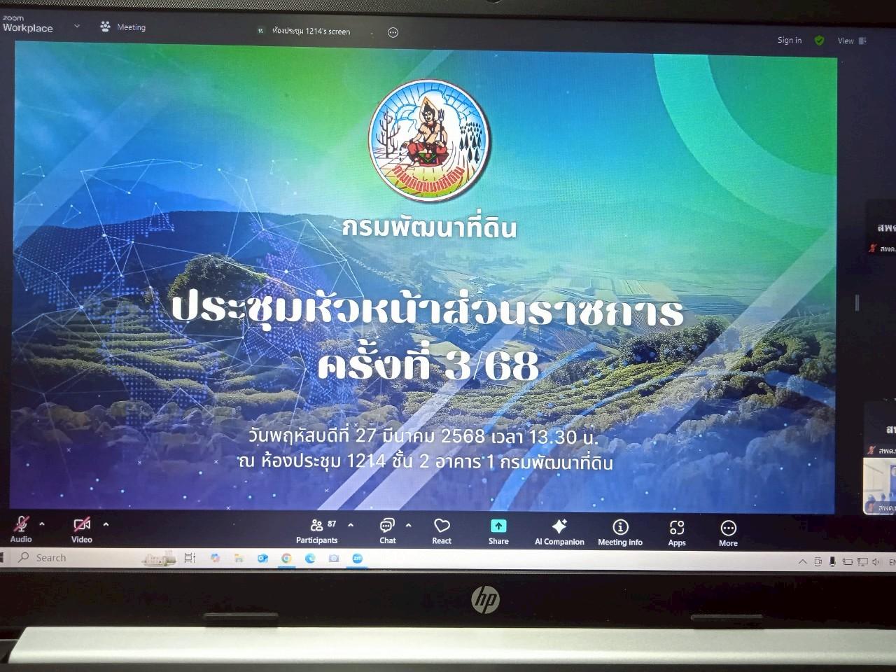 ประชุมหัวหน้าส่วนราชการกรมพัฒนาที่ดิน ครั้งที่ 3/2568 ผ่านระบบ Zoom Meeting ณ สถานีพัฒนาที่ดินพิจิตร ตำบลโรงช้าง อำเภอเมือง จังหวัดพิจิตร
