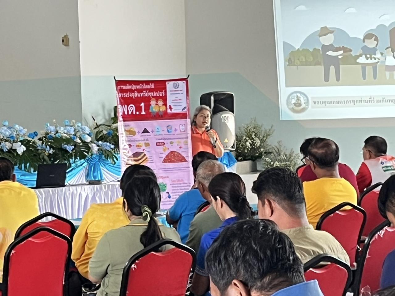 นางสาววาสนา พรมนิล นักวิชาการเกษตรชำนาญการ และทีมงาน สถานีพัฒนาที่ดินพิจิตร ถ่ายทอดองค์ความรู้ เรื่อง "การจัดการเศษวัสดุทางการเกษตรอย่างเป็นมิตรต่อสิ่งแวดล้อม" ณ หอประชุมที่ว่าการอำเภอบึงนาราง อำเภอบึงนาร่าง จังหวัดพิจิตร