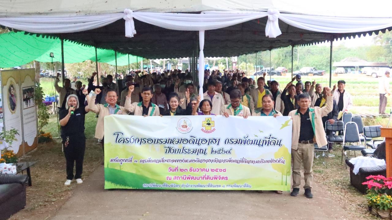 สถานีพัฒนาที่ดินพิจิตร โดยนายมนต์ชัย พรมลอองวัน ผู้อำนวยการสถานีพัฒนาที่ดินพิจิตร พร้อมด้วยเจ้าหน้าที่ จัดอบรมหมอดินอาสา หลักสูตรที่ 3 การพัฒนาศักยภาพของหมอดินอาสาด้านการพัฒนาที่ดินตามบริบทท้องถิ่น และการถอดบทเรียนจากหมอดินอาสา จังหวัดพิจิตร จำนวน 300 ราย ณ สถานีพัฒนาที่ดินพิจิตร ตำบลโรงช้าง อำเภอเมือง จังหวัดพิจิตร