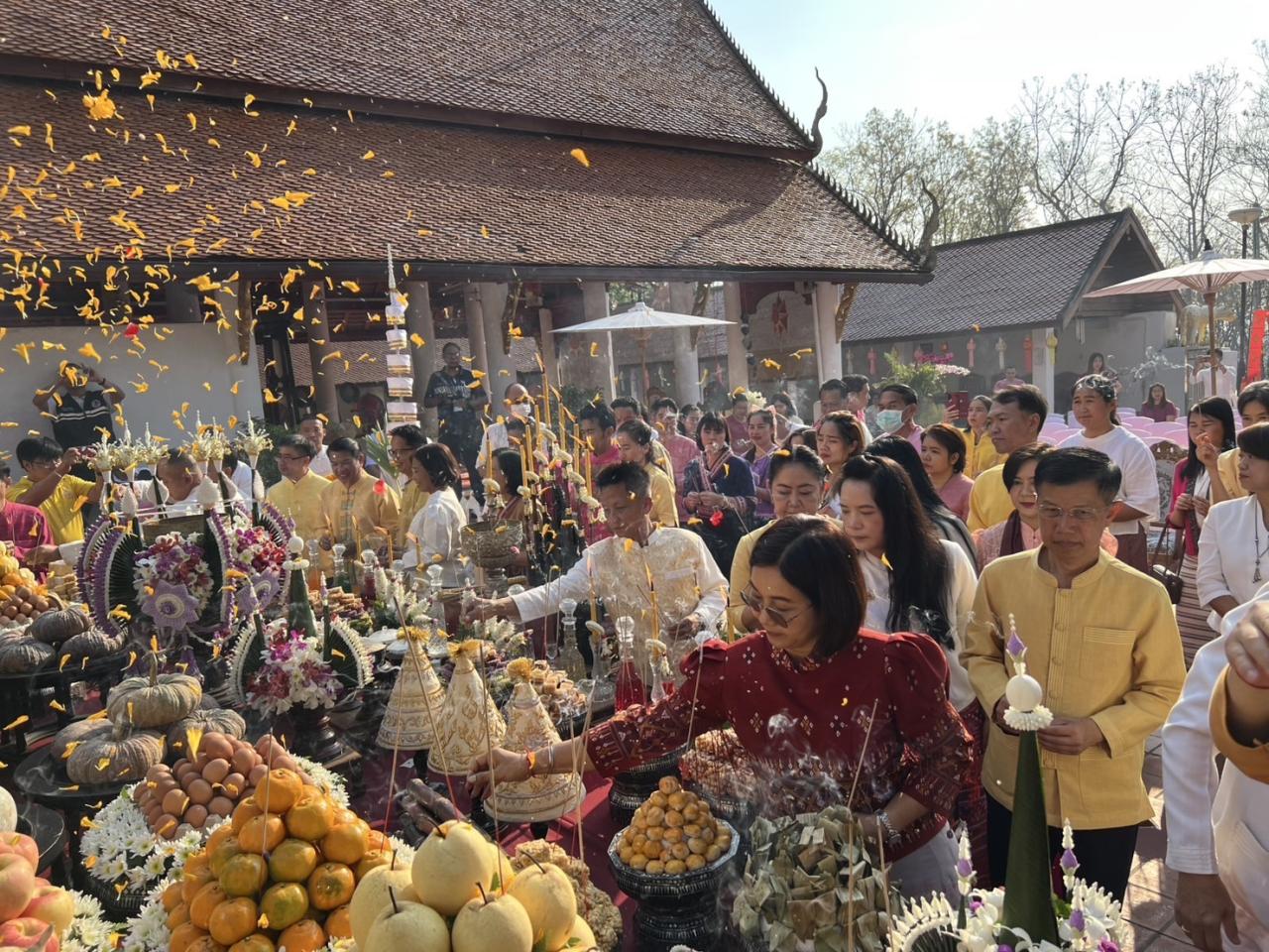 นางมนัสนันท์ ไชยนุรัตน์ ผู้อำนวยการสถานีพัฒนาที่ดินพะเยา เข้าร่วมพิธีบูชาท้าวทั้งสี่ และพิธีตักน้ำกว๊านพะเยา (กิจกรรมงานประเพณีสรงน้ำและห่มผ้าพระธาตุจอมทอง) ในโครงการส่งเสริมการท่องเที่ยวเทศกาล งานประเพณี วัฒนธรรม และวิถีชาติพันธุ์พะเยา โดยมีนายรัฐพล นราดิศร ผู้ว่าราชการจังหวัดพะเยา เป็นประธานฯ โครงการดังกล่าวจัดขึ้นเพื่อส่งเสริมการท่องเที่ยวงานประเพณี วัฒนธรรมและชาติพันธุ์ ส่งเสริมการนำทุนที่เป็นมรดกทางวัฒนธรรม ภูมิปัญญา วิถีชีวิตมาพัฒนา เพิ่มมูลค่าในการท่องเที่ยวเชิงวัฒนธรรมในจังหวัดพะเยา ณ โบราณสถานพระธาตุจอมทอง วัดศรีโคมคำ พระอารามหลวง