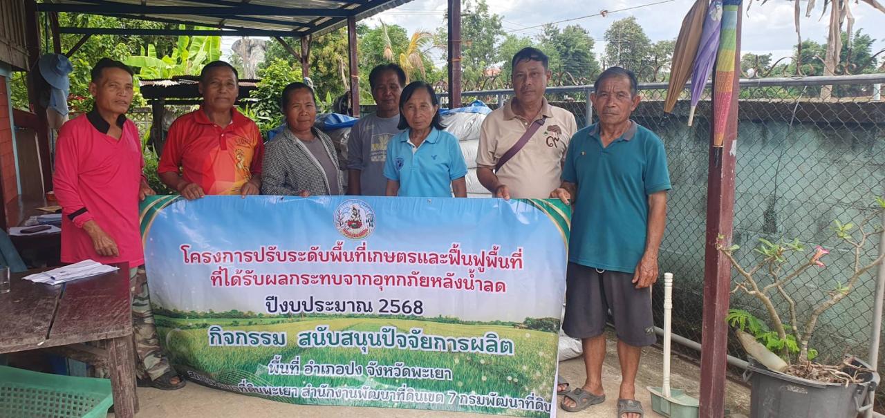 มอบปัจจัยการผลิต ปุ๋ยหมัก พด.1 โครงการปรับระดับพื้นที่เกษตรกรและฟื้นฟูพื้นที่ที่ได้รับผลกระทบจากอุทกภัยหลังน้ำลด (น้ำท่วม) ปี 2568 บ้านดอนเงิน หมู่ 1 บ้านต้นผาง หมู่ 5 และบ้านหลวง หมู่ 6 ตำบลออย อำเภอปง จังหวัดเยา