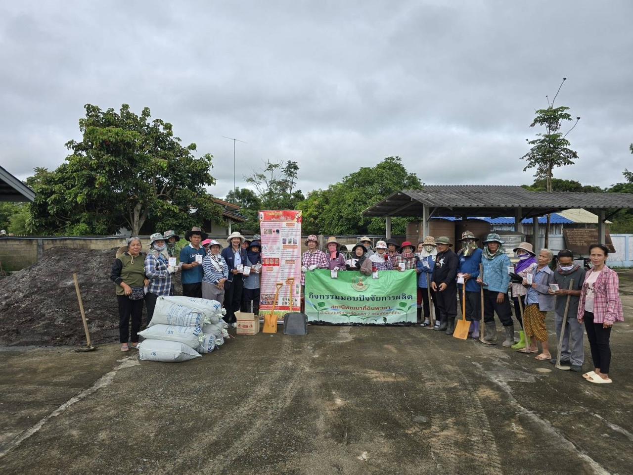 นางมนัสนันท์ ไชยนุรัตน์ ผู้อำนวยการสถานีพัฒนาที่ดินพะเยา มอบหมายให้นางวิภาดา หล่อวงค์ เจ้าพนักงานการเกษตรปฏิบัติงาน สาธิตการผลิตปุ๋ยหมักชีวภาพ และสนับสนุนมอบปัจจัยการผลิตของกรมพัฒนาที่ดิน ได้แก่ น้ำหมักชีวภาพ และโดโลไมท์ในโครงการการจัดการความเสื่อมโทรมของที่ดินด้วยแนวคิดความสมดุลการจัดการทรัพยากรที่ดิน (LDN) ให้กับเกษตรกรที่เข้าร่วมโครงการฯ เพื่อส่งเสริม สนับสนุนกิจกรรมสนับสนุนปัจจัยการผลิต เพิ่มศักยภาพดินพื้นที่เป้าหมาย พร้อมทั้งสร้างความมั่นคงทางอาชีพเกษตรกรและแนวทางการจัดการด้านความสมดุลของการใช้ที่ดินไปใช้ในการกำหนดมาตรการการจัดการดินเสื่อมโทรมที่เหมาะสมในระดับพื้นที่ ณ บ้านฝายกวาง หมู่ 17 ตำบลฝายกวาง อำเภอเชียงคำ จังหวัดพะเยา