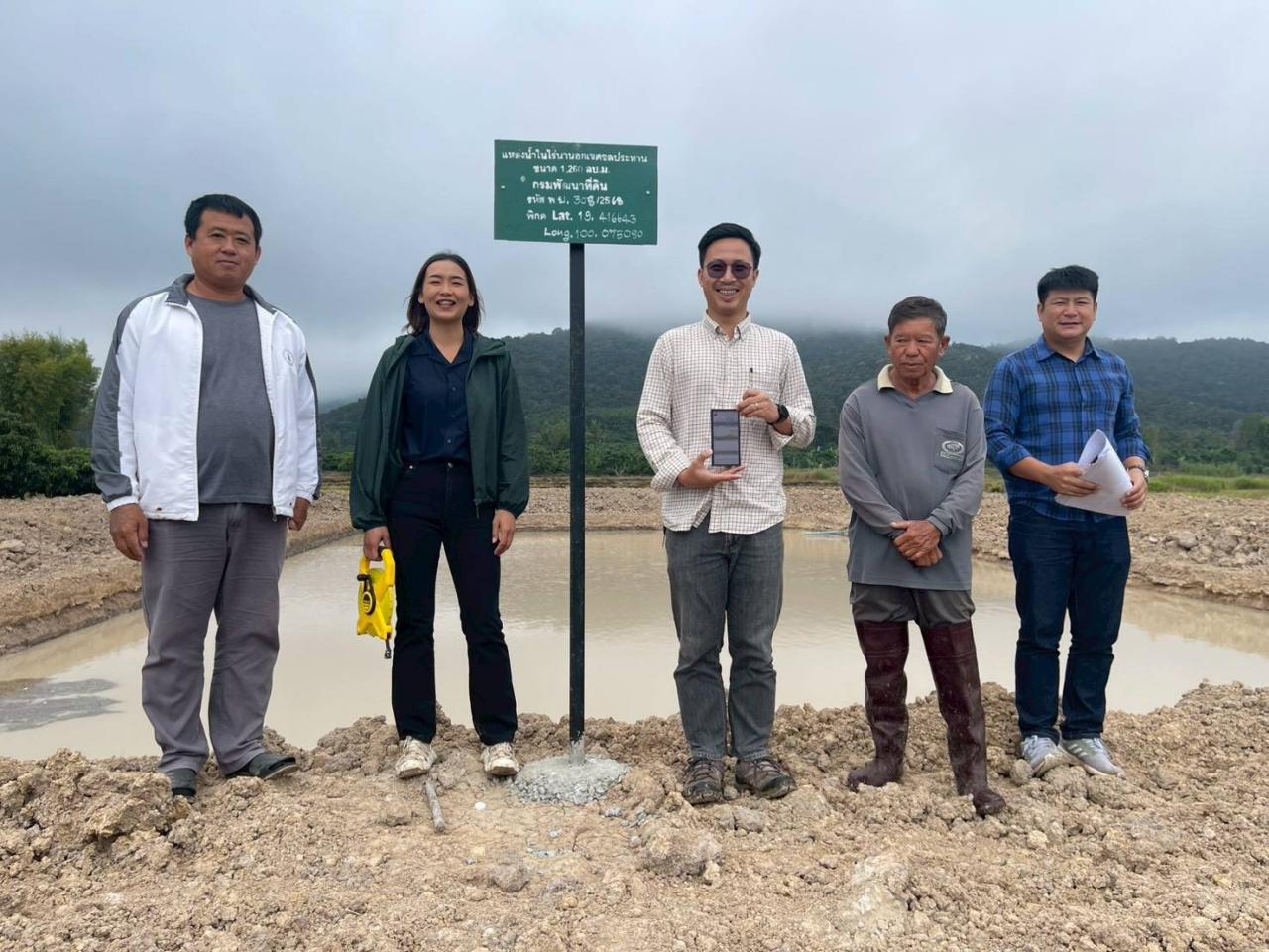 เพื่อตรวจเช็คขนาด ปริมาณงานดินขุด และคุณภาพของงาน ให้ตรงตามแบบแปลนงานก่อสร้างสระน้ำ (บ่อจิ๋ว) ของกรมพัฒนาที่ดิน