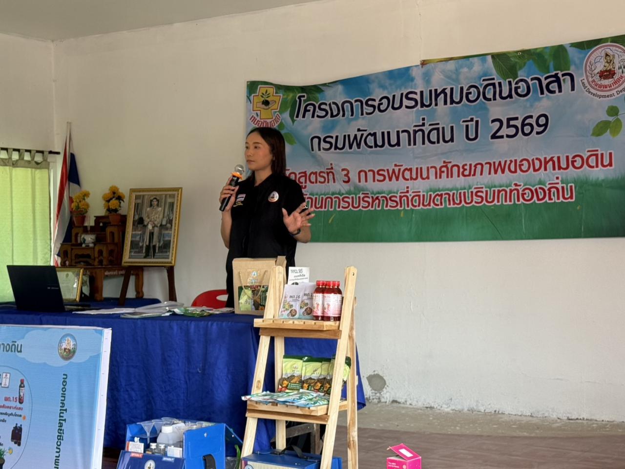 วันจันทร์ ที่ 2 กุมภาพันธ์ 2569 นางวิภาดา หล่อวงค์ เจ้าพนักงานการเกษตรปฏิบัติงาน พร้อมด้วยเจ้าหน้าที่สถานีพัฒนาที่ดินพะเยา ดำเนินการฝึกอบรมโครงการอบรมหมอดินอาสาปีงบประมาณ 2569 หลักสูตร 3 “การพัฒนาศักยภาพของหมอดินอาสา ด้านการพัฒนาที่ดินตามบริบทท้องถิ่น” เพื่อให้หมอดินอาสานำองค์ความรู้ที่ได้รับไปประยุกต์สู่การปฏิบัติจริง และนำความรู้ที่ได้รับไปต่อยอดอาชีพด้านการเกษตรตามความเหมาะสมกับพื้นที่ของตนเอง โดยมีนายวิวรรธน์ภูมิ พรอำนวยลาภ ผู้อำนวยการสถานีพัฒนาที่ดินพะเยา เป็นประธานในพิธีเปิด ณ ศูนย์เรียนรู้ด้านเศรษฐกิจพอเพียงบ้านปัว ตำบลฝายกวาง อำเภอเชียงคำ จังหวัดพะเยา
