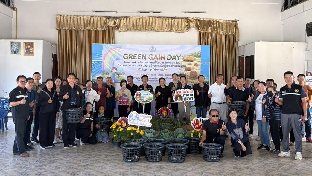 วันศุกร์ที่ 27 กุมภาพันธ์ 2569 นายวิวรรธน์ภูมิ พรอำนวยลาภ ผู้อำนวยการสถานีพัฒนาที่ดินพะเยา มอบหมายให้นางสาววรรณิศา ทองมี นักวิชาการเกษตรปฏิบัติการ พร้อมด้วยเจ้าหน้าที่สถานีพัฒนาที่ดินพะเยา เข้าร่วมจัดนิทรรศการในกิจกรรม “Green Grain Day” สร้างการเรียนรู้และสร้างแรงจูงใจ “ไม่เผาแต่ได้รายได้“ ภายใต้โครงการส่งเสริมการเกษตรที่เป็นมิตรกับสิ่งแวดล้อม ปีงบประมาณ 2569 เพื่อส่งเสริมการมีส่วนร่วมของชุมชนเกษตรเพื่อป้องกันและแก้ไขปัญหาการเผาในพื้นที่เกษตร และสร้างรายได้จากการจัดการเศษวัสดุเหลือใช้ทางการเกษตร พร้อมทั้งสนับสนุนสารเร่งซุปเปอร์ พด. และน้ำหมักชีวภาพ พด.2 แก่เกษตรกรกลุ่มเป้าหมาย จำนวน 40 ราย ณ องค์การบริหารส่วนตำบลดอนศรีชุม หมู่ที่ 8 ตำบลดอนศรีชุม อำเภอดอกคำใต้ จังหวัดพะเยา