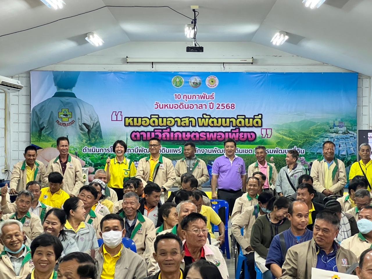 วันจันทร์ ที่ 10 กุมภาพันธ์ พ.ศ. 2568 สถานีพัฒนาที่ดินแพร่ โดยนายณัฎพสิษฐ์ เถระรัชชานนท์ ผู้อำนวยการสถานีพัฒนาที่ดินแพร่ พร้อมด้วยข้าราชการ ลูกจ้างประจำ พนักงานราชการ และเจ้าหน้าที่ในสังกัด ร่วมจัดงานวันหมอดินอาสา กรมพัฒนาที่ดิน ประจำปี 2568 ภายใต้ธีมงาน “หมอดินอาสา พัฒนาที่ดิน ตามวิถีเกษตรพอเพียง” รับชมการถ่ายทอดสดผ่านระบบ Zoom conference Meeting มีศูนย์กลางการจัดงาน ณ ศูนย์ศิลปาชีพบางไทร ตำบลช้างใหญ่ อำเภอบางไทร จังหวัดพระนครศรีอยุธยา จัดขึ้นเพื่อเชิดชูเกียรติหมอดินอาสา ผู้เสียสละและทุ่มเทการทำงานร่วมกับกรมพัฒนาที่ดินในการอนุรักษ์ พัฒนา ดูแลดินและที่ดินทางการเกษตรมาอย่างยาวนาน โดยมีหมอดินอาสาในพื้นที่จังหวัดแพร่ เข้าร่วมรับชมการถ่ายทอดสดกว่า 100 ราย โดยมีวิทยากร ผศ.ดร.วรรณา มังกิตะ มหาวิทยาลัยแม่โจ้-แพร่ เฉลิมพระเกียรติ ร่วมบรรยายให้ความรู้ ในหัวข้อ “การเพาะเห็ดป่า ไมคลอไรซากินได้” แก่หมอดินอาสาที่มาร่วมกิจกรรมฯ ในครั้งนี้