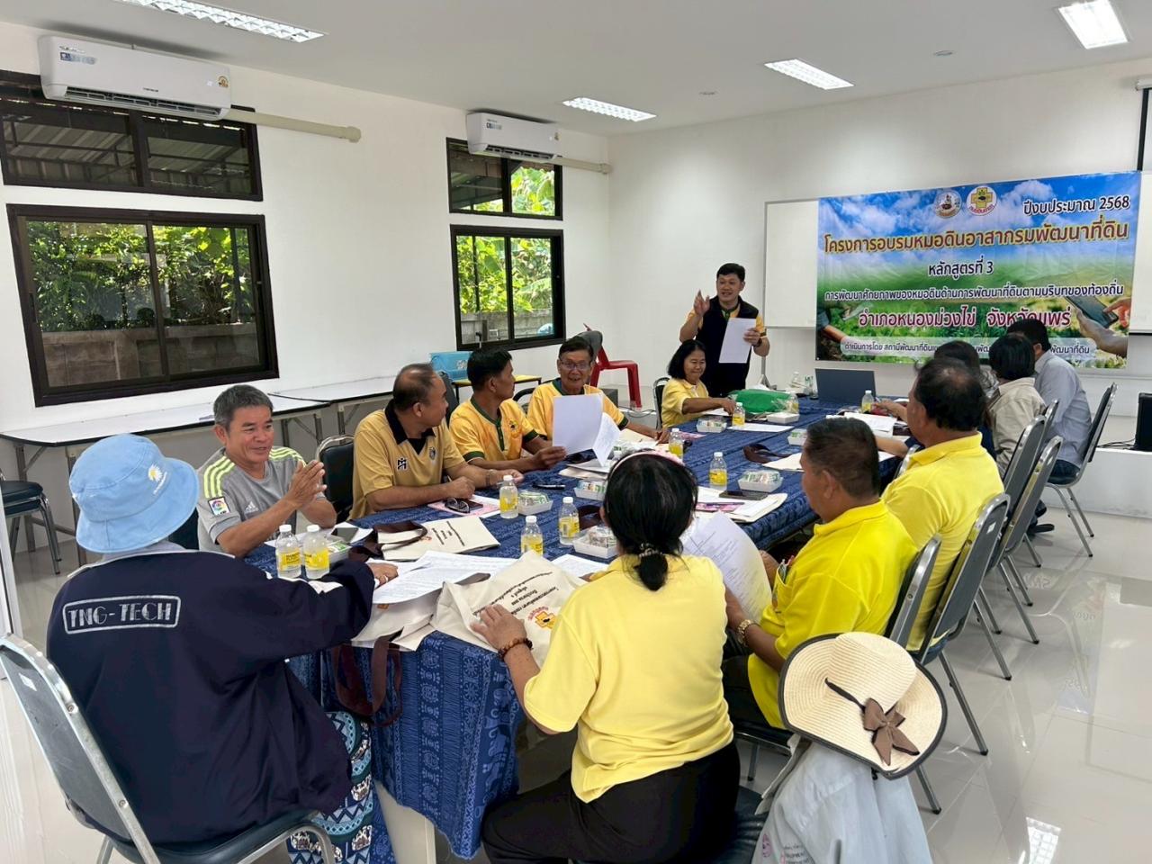 สถานีพัฒนาที่ดินแพร่ จัดฝึกอบรมโครงการอบรมหมอดินอาสา กรมพัฒนาที่ดิน ปีงบประมาณ 2568 หลักสูตรที่ 3 การพัฒนาศักยภาพของหมอดินด้านการพัฒนาที่ดินตามบริบทของท้องถิ่น ณ ห้องประชุมสำนักงานเกษตรอำเภอหนองม่วงไข่ อ.หนองม่วงไข่ จ.แพร่