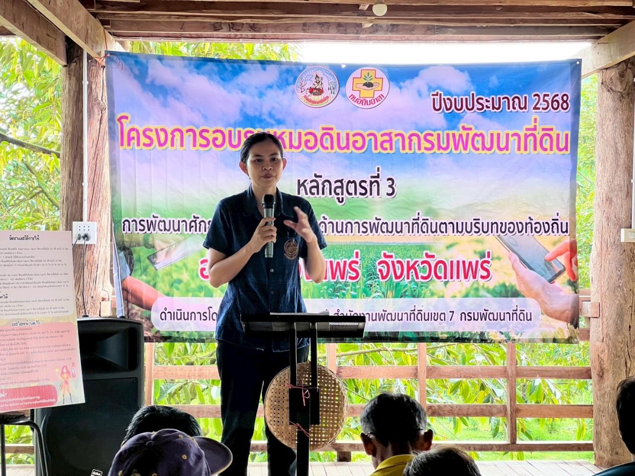 สถานีพัฒนาที่ดินแพร่ จัดฝึกอบรมโครงการอบรมหมอดินอาสา กรมพัฒนาที่ดิน ปีงบประมาณ 2568 หลักสูตรที่ 3 การพัฒนาศักยภาพของหมอดินด้านการพัฒนาที่ดินตามบริบทของท้องถิ่น ณ ศูนย์เรียนรู้การเพิ่มประสิทธิภาพการผลิตสินค้าเกษตร ม. 6 ต.ช่อแฮ อ.เมือง จ.แพร่